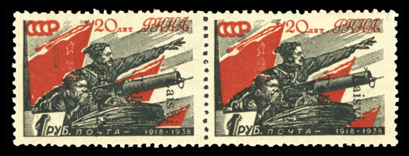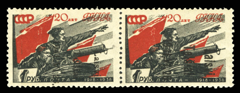 WORLD WAR II OCCUPATION ISSUES Lithuania - Telsiai (Mi.10IK) 1941 1r red and black, type I, horizontal pair, overprint inverted, n.h., v.f. and rare, with 1994 Krischke certificate, unlisted in Michel (only type III inverted is listed, and it has a