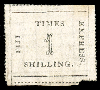COMMONWEALTH FIJI (5) 1870 Fiji Times Express, 1sh black, pink, Thin Quadrille Paper, unused without gum, good color and margins, fine and rare stamp, especially in this condition, without the usual defects (SG 4, £2,250) cat. Value $3500 (Image)