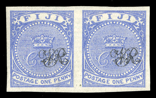 COMMONWEALTH FIJI (36var) 1876 1p ultramarine, horizontally laid paper, imperforate horizontal pair, h.r., v.f. (SG 31c, £750) (Image)