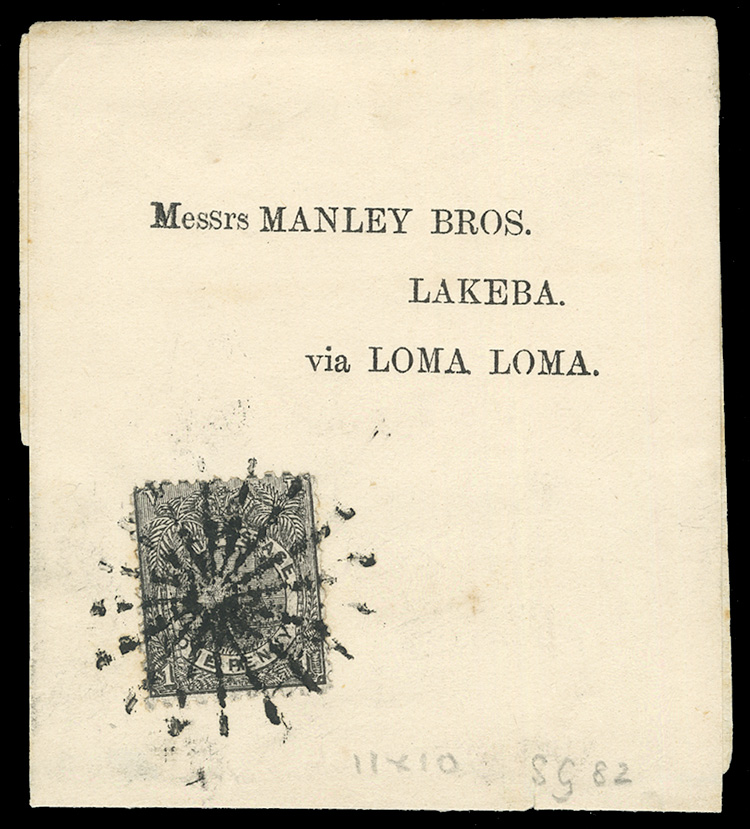 COMMONWEALTH FIJI (54) 1893 1p black, perforated 11x10, used on a newspaper wrapper addressed to Lakebay, via Loma, fine and exceptionally rare (SG 82) (Image)