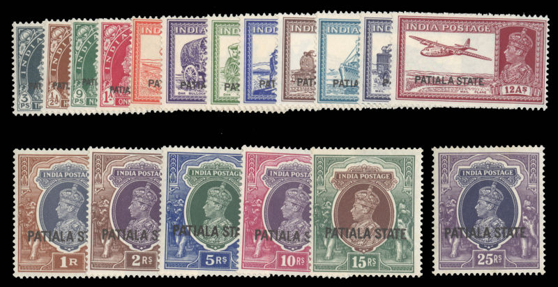 COMMONWEALTH INDIAN FEUDATORY STATES - Patiala (80-97) 1937-38 George VI, complete set of 18, mostly n.h., fine-v.f. (SG 80-97) cat. Value $540 (Image)