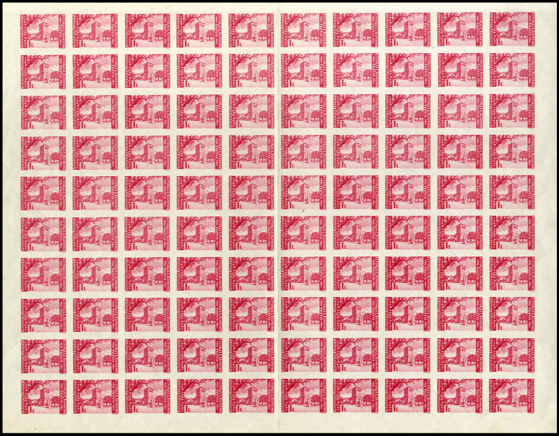 WORLD WAR II OCCUPATION ISSUES Yugoslav Occupation of Istria and Slovenia (Sass. 60A-B) 1946 Issue for Istria & Litorale Slovenia, unissued 1L brown and 1L carmine, imperforate sheets of 100, folded between stamps, n.h., v.f. and scarce set of sheets