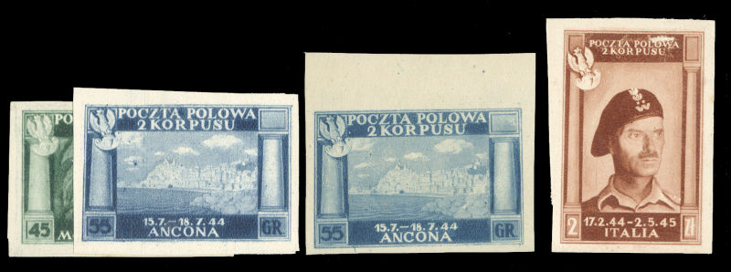 WORLD WAR II OCCUPATION ISSUES Polish Corps in Italy - Corpo Polacco (Sass.F2A) 1946 55gr blue (Ancona) sheetlet without marginal inscriptions, v.f., stated to be the only known(!) unused example (Euro 12,000) (Image)