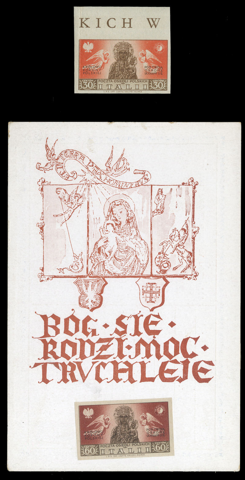 WORLD WAR II OCCUPATION ISSUES Polish Corps in Italy - Corpo Polacco (Sass.19A,21A) 1946 Madonna, 30gr orange & brown, 60gr brown & rose, imperforate singles, the latter affixed on unaddressed postcard, the former n.h., v.f., extremely rare