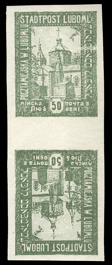 Polish Locals - Luboml (Mi.I-VKU) 1918 issue in four languages, imperf. horizontal or vertical tete-beche pairs, v.f. (Euro 250) (Image)