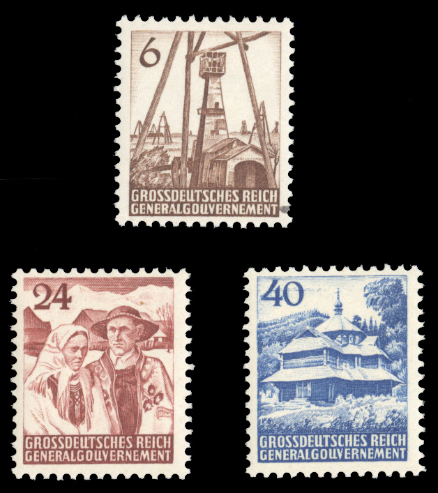 Generalgouvernement - WWII German Occupation (Mi.I-III) 1943 unissued "Gorale" set of three, n.h., 6pf with natural inclusion at bottom, otherwise fine-v.f.,