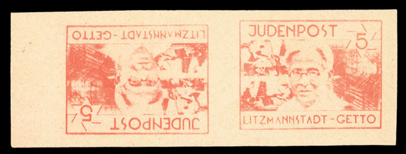 Ghettopost - Litzmannstadt (Lodz) (Mi.I) 1944 5pf orange red, horizontal tete-beche pair on magazine paper, v.f., signed Laszkiewicz, (Image)
