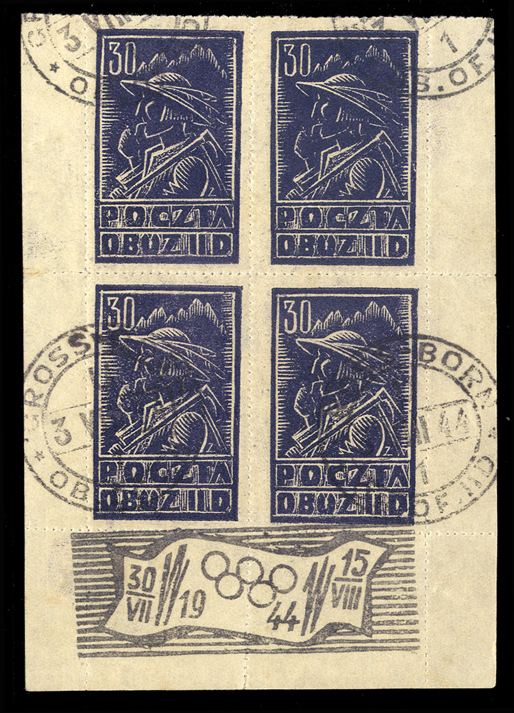 Gross-Born Offlag IID 1944 Gorale, 30f violet, bottom sheet margin block of four, with Olympic Year commemorative postmark, v.f. (Image)
