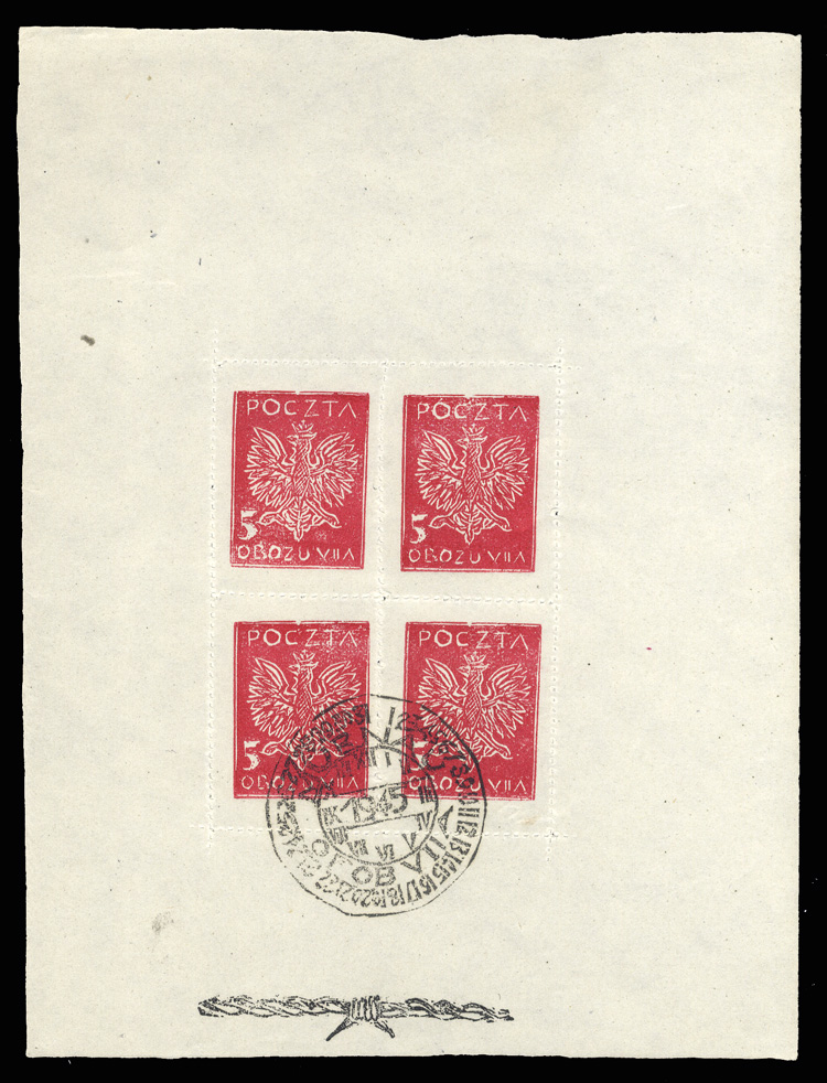 Murnau - Offlag VIIA 1944 5m carmine (Polish Eagle) sheetlet of block of four, with special postmark, fine-v.f., scarce (Image)