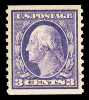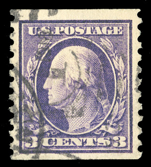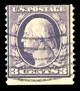 States 1910-13 Issues (389) 1911 3c deep violet, Type I, Orangeburg Coil single, usual centering, pressed out crease at upper right, otherwise fine, with 2008 PSE certificate graded "G30". The 3c Orangeburg coil was made by the Post Office Department