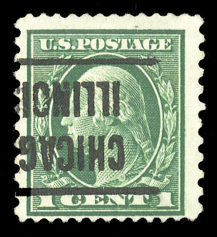 States 1914-17 Issues (423A) 1914 1c green, compound perf. 12x10, Chicago precancel, well centered for this difficult issue, with the design clear of the perforations on all sides, v.f. and rare sound copy, with 2025 PFC. According to Scott, only 18