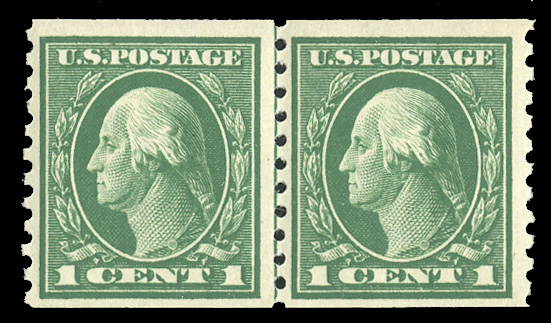 States 1914-17 Issues (443) 1914 1c green, horizontal line pair, n.h., with 2025 PFC graded "F-VF 75" (SMQ $225) (Image)