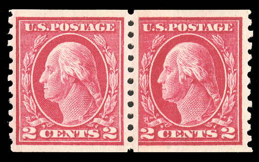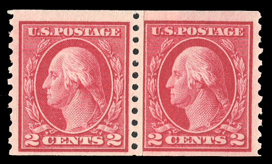 States 1914-17 Issues (444) 1914 2c carmine, paste up horizontal pair, n.h., bright color, with 2025 PFC graded "VF 80" (SMQ $220) (Image)