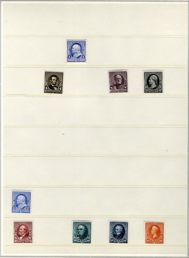 1321 P   imageLARGE LOTS AND COLLECTIONS UNITED STATES 1890-93 Issue, balance of a proof collection, with 1c, 2c, 3c, 4c, 5c, 6c (full sized), 8c, 10c, 15c, 30c and 90c trimmed large die proofs (plus 1c large die hybrid proof), 5c small die proof, imperf. trial color pair and single (the latter with PFC), 90c with small die proof, miscellaneous plate proofs on india or card including some blocks of four and pairs, 5c and 6c imperf. Proofs on stamp paper, etc., few minor faults noted, generally fine-v.f. and nice group (Image) (Image 2) (Image 3) (Image 4) (Image 5) (Image 6) (Image 7) (Image 8) (Image 9) (Image 10) (Image 11) (Image 12) (Image 13) (Image 14) (Image 15) (Image 16) (Image 17) (Image 18) (Image 19) (Image 20) (Image 21) (Image 22) (Image 23) (Image 24) (Image 25) (Image 26) (All Images)