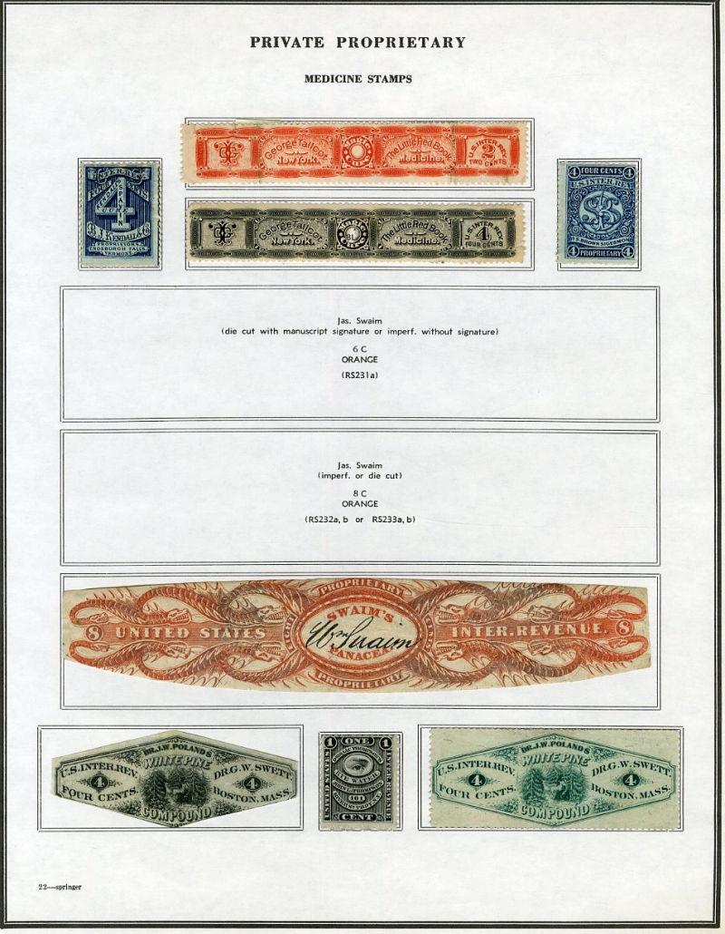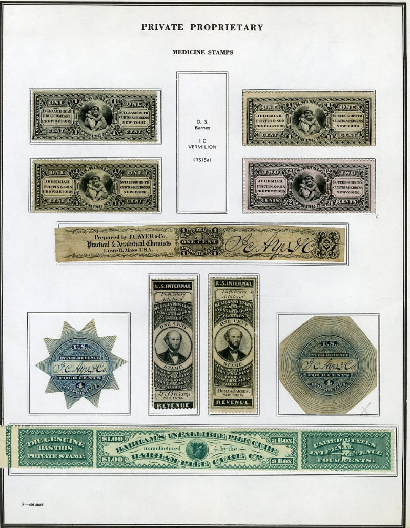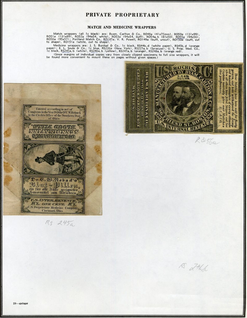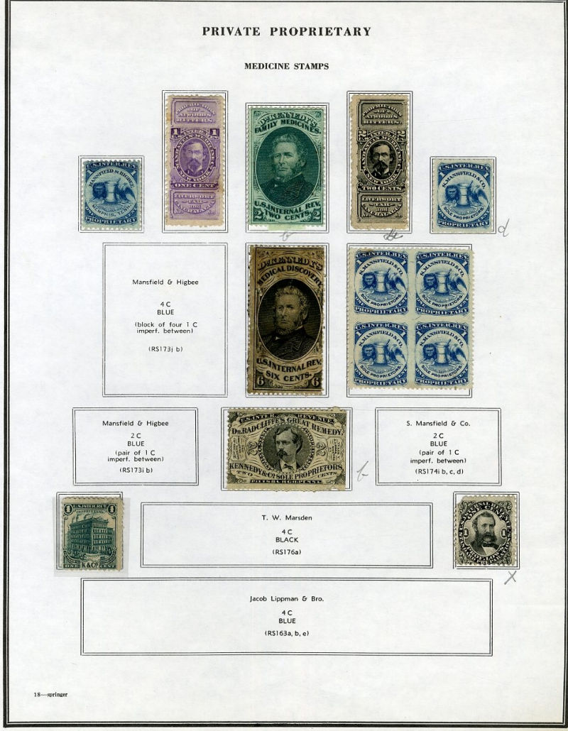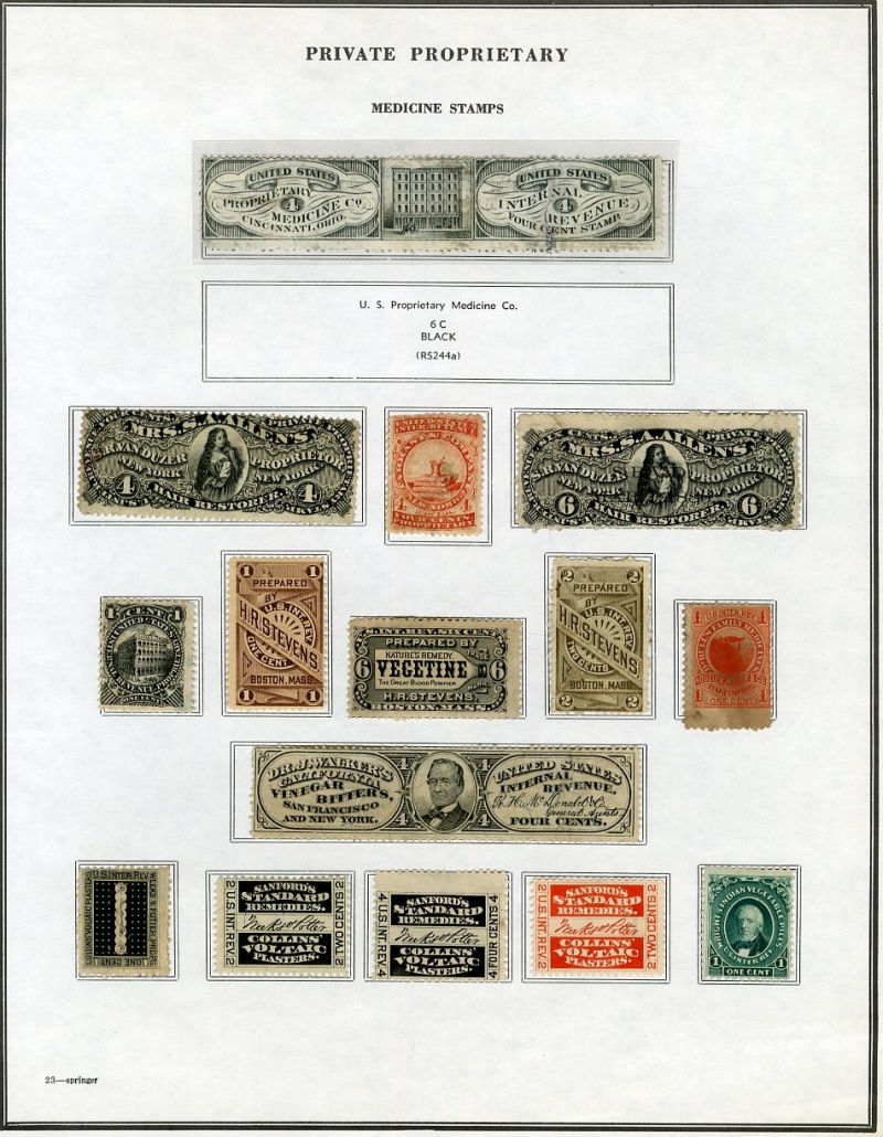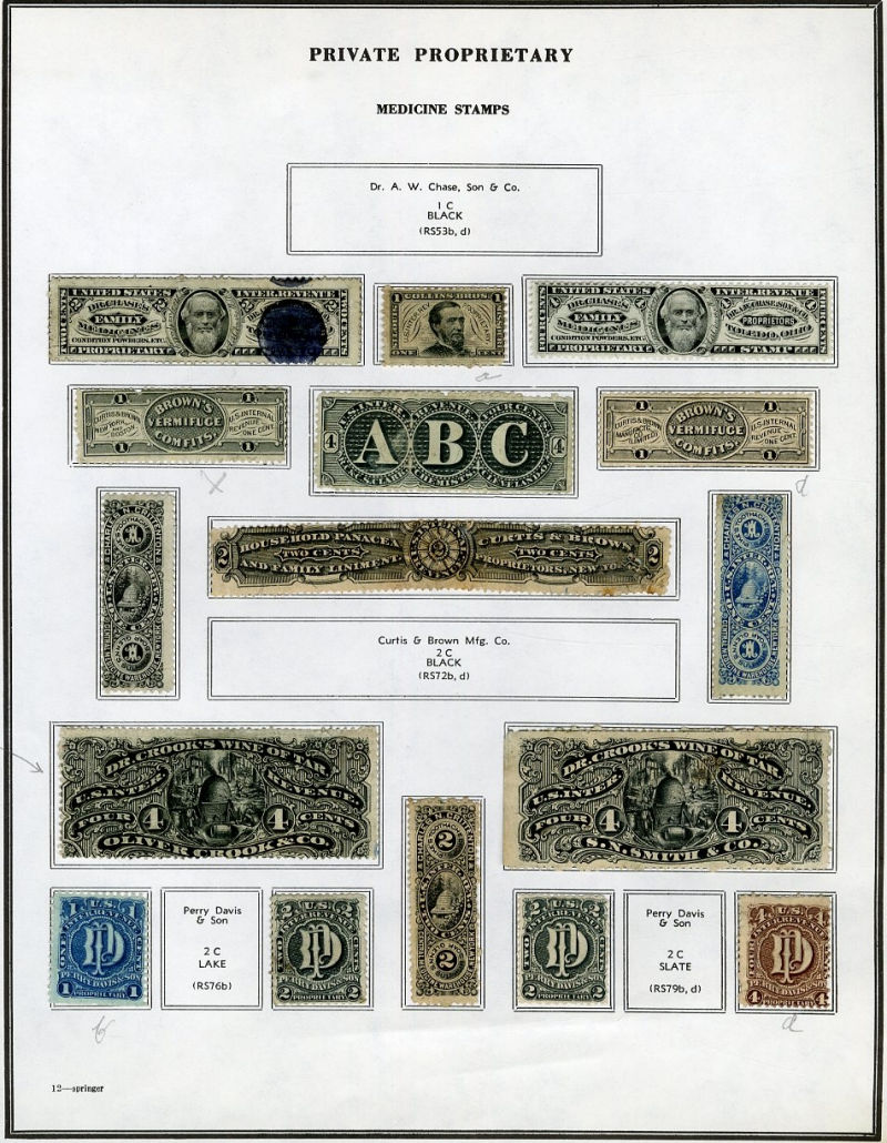 1325 O, og   imageLARGE LOTS AND COLLECTIONS UNITED STATES Private Die & Proprietary 1862-77 Match and Medicine, collection on Springer pages, 400+ different, formed by an astute collector, used and unused, usual condition with faults noted, many interesting items, fine-v.f., high catalogue value (Image) (Image 2) (Image 3) (Image 4) (Image 5) (Image 6) (Image 7) (Image 8) (Image 9) (Image 10) (Image 11) (Image 12) (Image 13) (Image 14) (Image 15) (Image 16) (Image 17) (Image 18) (Image 19) (Image 20) (Image 21) (Image 22) (Image 23) (Image 24) (Image 25) (Image 26) (Image 27) (Image 28) (Image 29) (Image 30) (All Images)