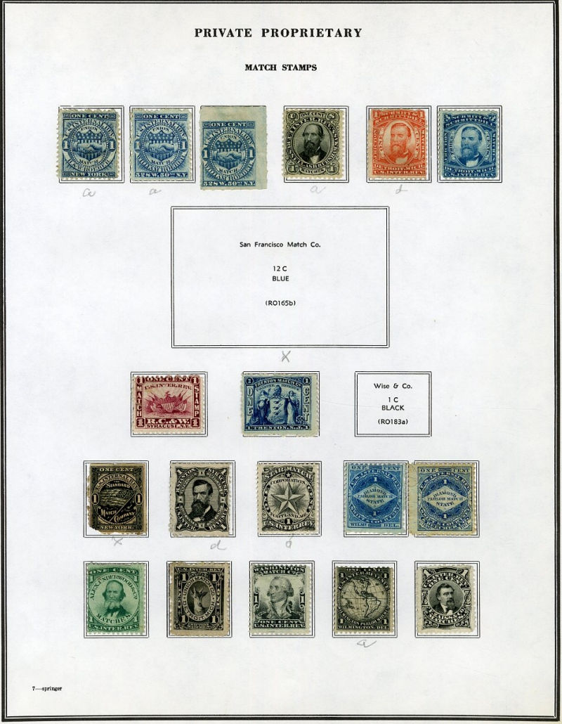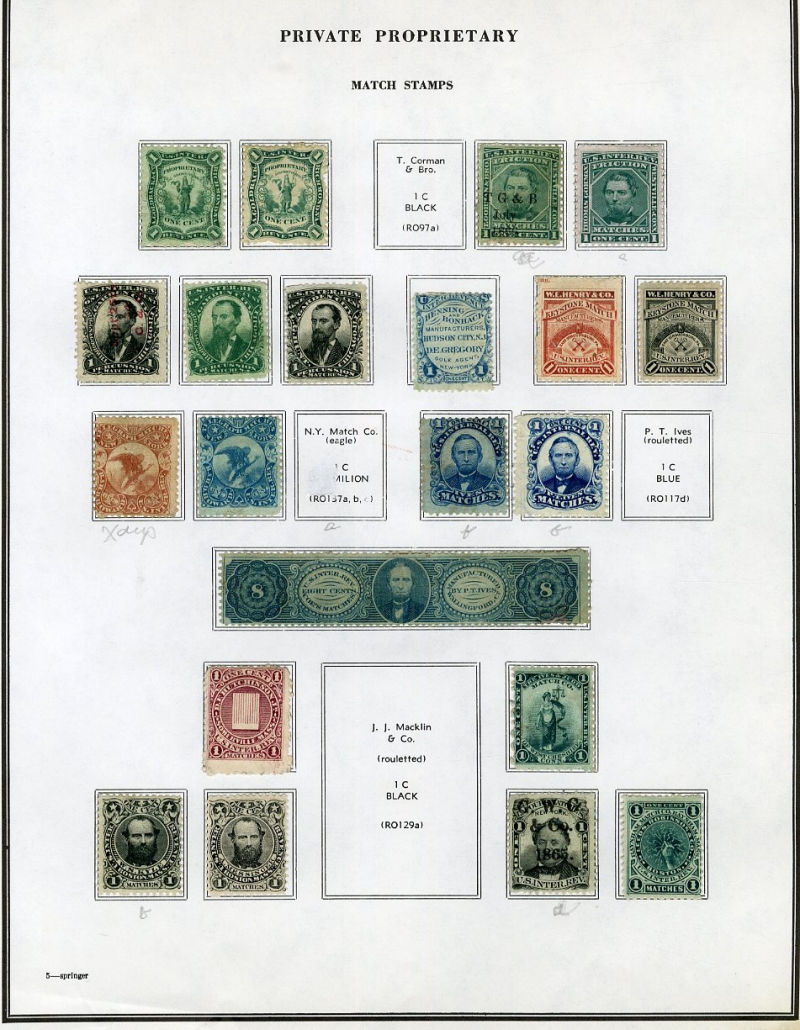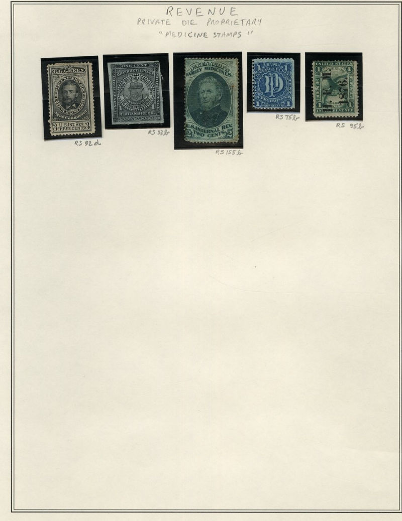 1328 O, og   imageLARGE LOTS AND COLLECTIONS UNITED STATES Private Die & Proprietary 1862-77 Match and Medicine, collection on Scott album pages, 100+ different, used and unused, usual condition with faults noted, many better items, fine-v.f. (Image) (Image 2) (Image 3) (Image 4) (Image 5) (Image 6) (Image 7) (Image 8) (All Images)