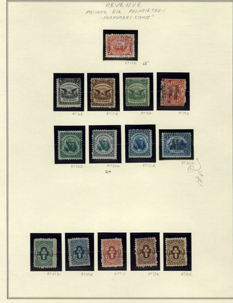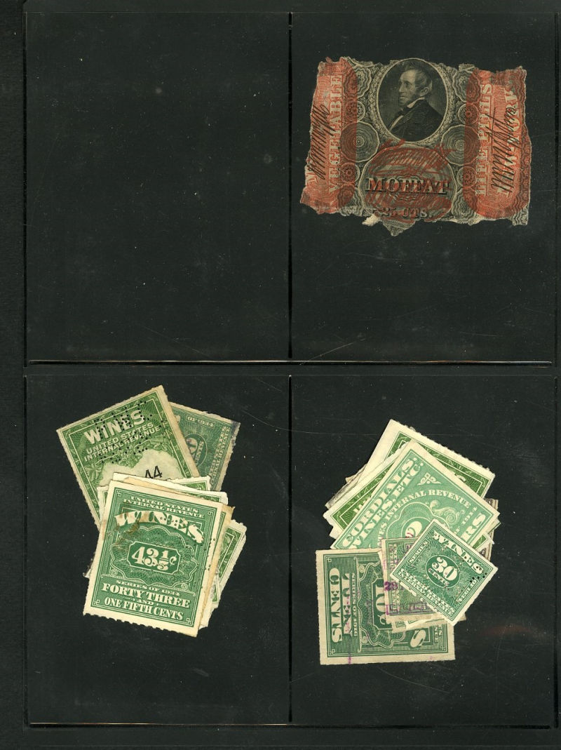 1326 O, og   imageLARGE LOTS AND COLLECTIONS UNITED STATES Private Die & Proprietary 1862-77 balance of a consignment on pages, with Regular Issues, Match and Medicine (20+ pieces), Wine, Beer, etc., few used on documents, mixed condition with usual faults noted, mostly fine-v.f. (Image) (Image 2) (Image 3) (Image 4) (Image 5) (Image 6) (Image 7) (Image 8) (Image 9) (Image 10) (Image 11) (Image 12) (Image 13) (Image 14) (Image 15) (Image 16) (Image 17) (All Images)