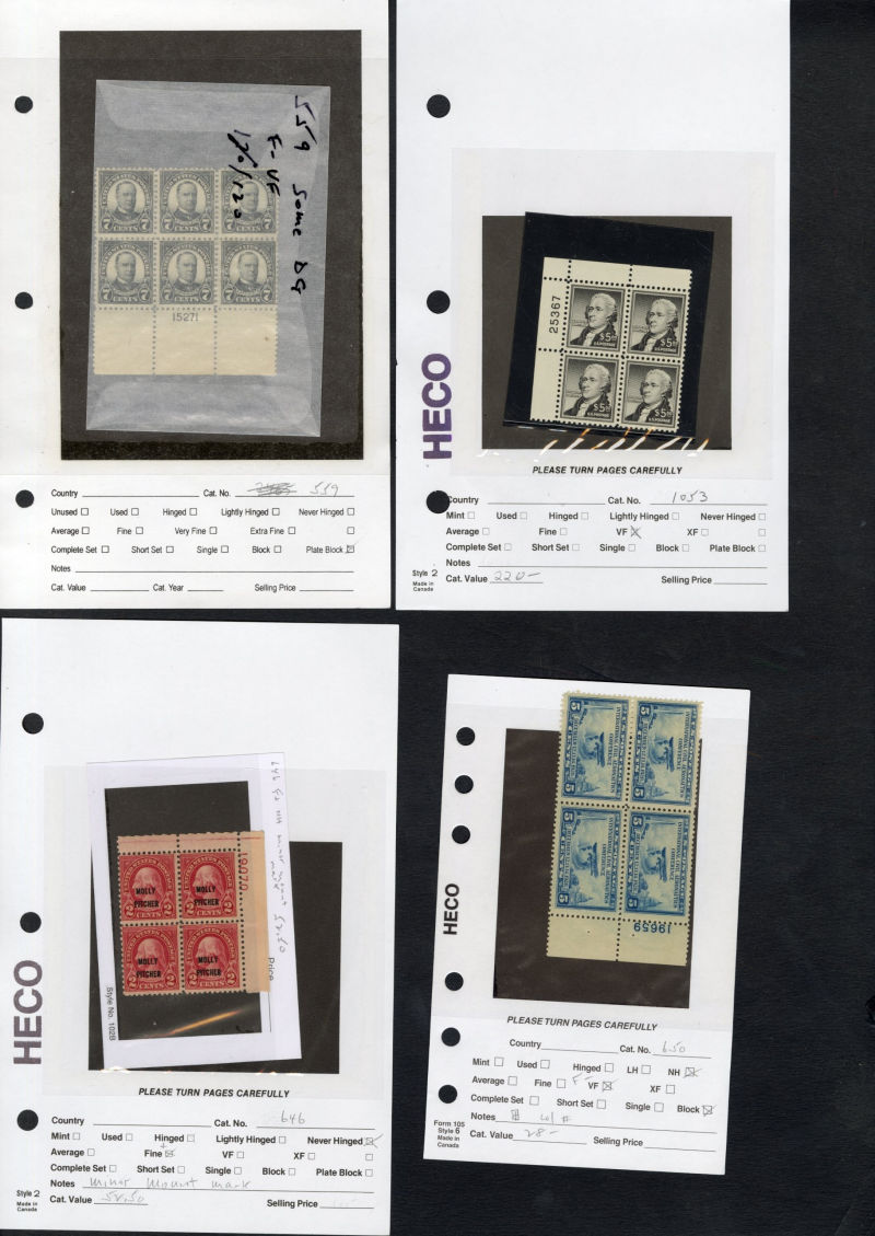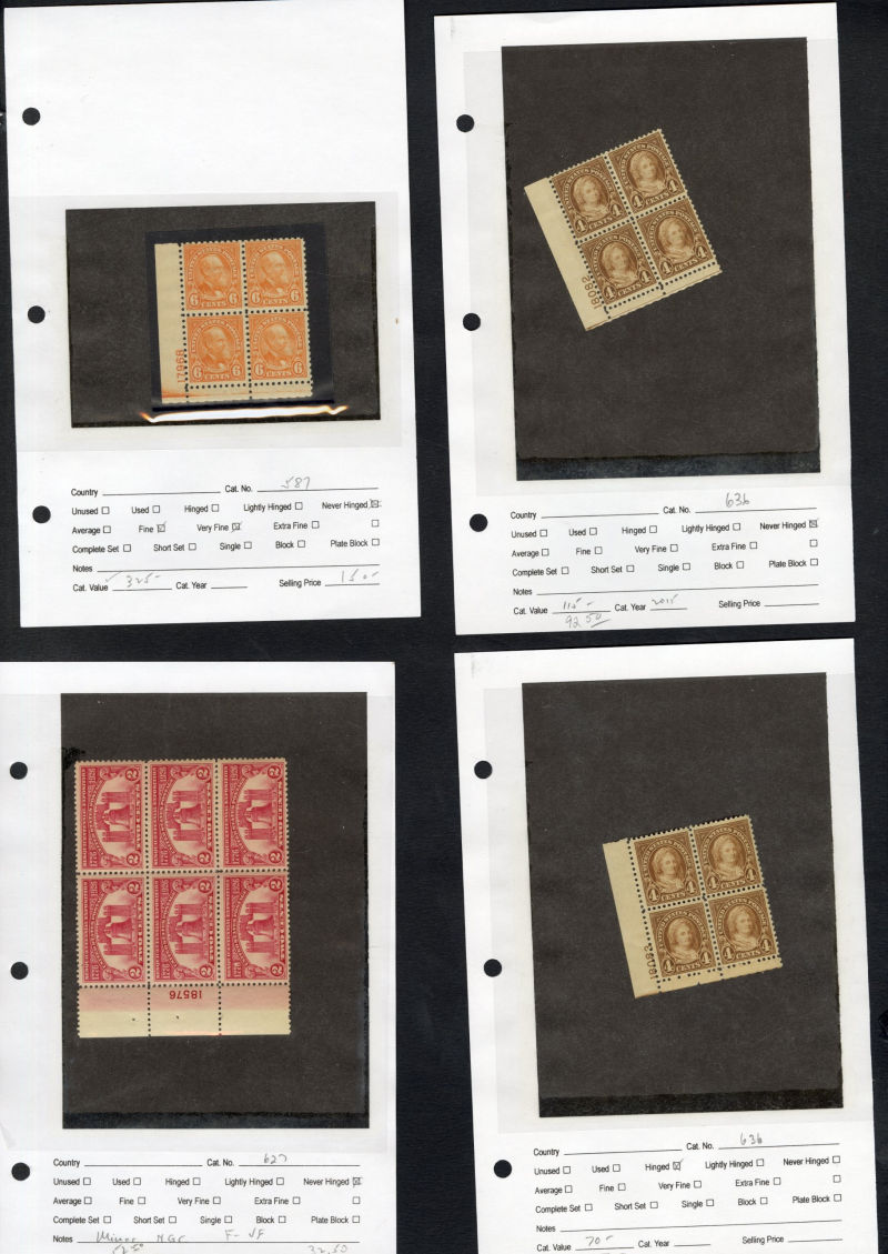 1329 nh, bl   imageLARGE LOTS AND COLLECTIONS UNITED STATES - Plate No. Blocks 1920s-40s duplicated selection of 100+, with 2c reds, Regular Issues, Flat Plate and Rotary printings, National Parks, Washington Bicentennial, $5 Coolidge, $5 Hamilton, some Famous Americans, etc., mostly n.h., fine-v.f., ex-Mary Farber ("Zillions of Stamps") (Image) (Image 2) (Image 3) (Image 4) (Image 5) (Image 6) (Image 7) (Image 8) (Image 9) (Image 10) (All Images)