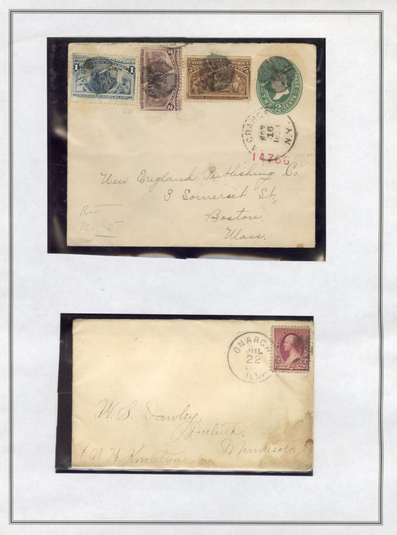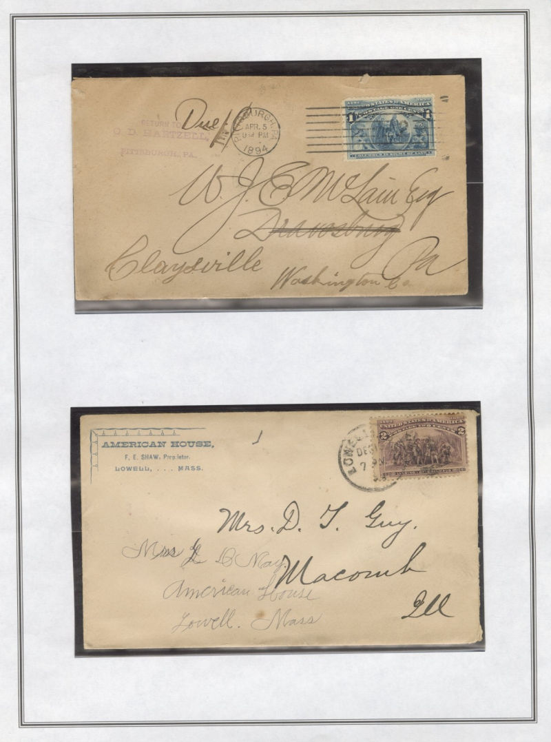 1333 c   imageLARGE LOTS AND COLLECTIONS UNITED STATES - Covers and Postal History 1890-93 Issue, specialized collection of 200+ covers or cards, organized by denomination, with various advertising, mixed frankings, registered, Special Delivery, Supplementary Mail, nice variety of destinations, rates, etc., often with the owner's purchase prices noted, some better items include 1c and 2c on 2c Alaskan Territorial Cover to Germany (Crowe certificate), 1c on mixed franking card with Great Britain (Crowe certificate), 1c on mixed usage (Scott 213 pair) stationery entire to Germany (Crowe certificate), Registered mixed franking with Samoa cover to England, and several 30c including "Chinese Smoking Opium" ppc to France, oversize cover to Germany with 3x30c, single 30c franking to France, 30c on 1c Stationery with additional 3x3c to Hungary paying the 80oz Newspaper rate (Crowe certificate), and more, mixed condition with some faults noted, generally fine and ideal for a specialist (Image)