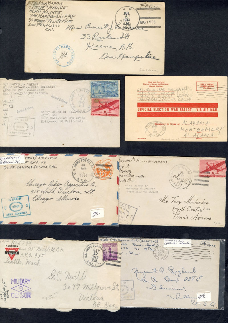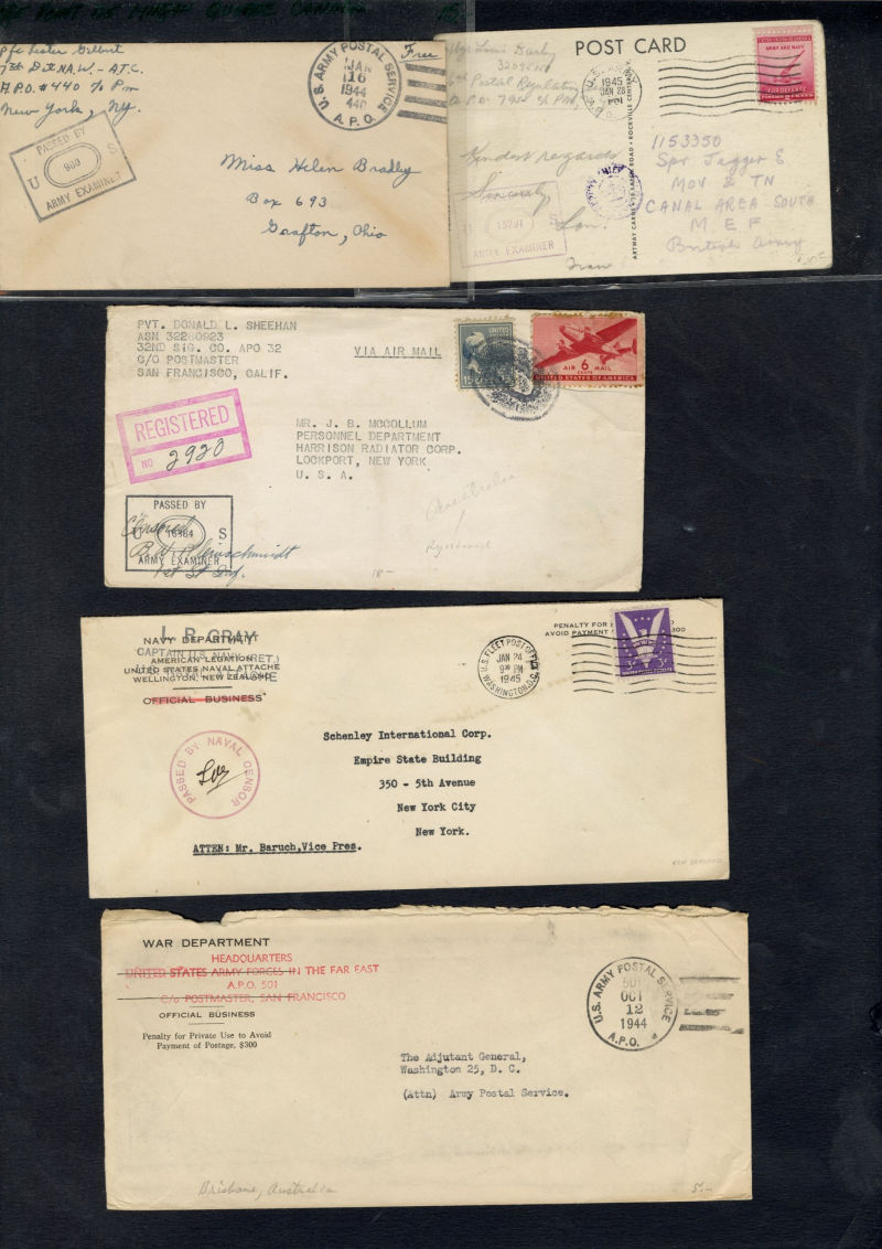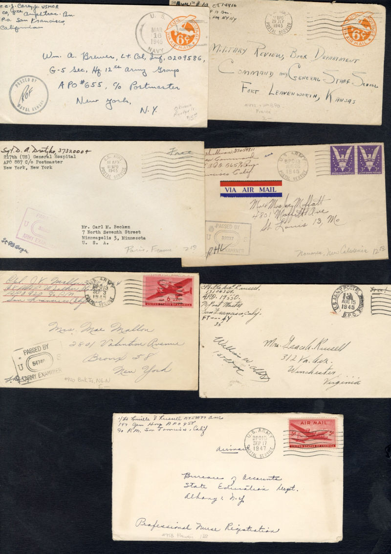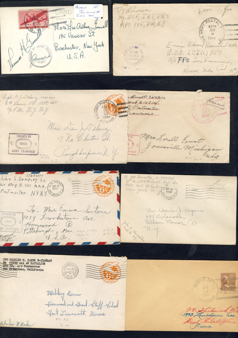 1335 c   imageLARGE LOTS AND COLLECTIONS UNITED STATES - Covers and Postal History 1940-50 group of 170+ covers or cards, U.S. Army and Navy abroad, with FPO markings, Naval censor handstamps, Prexies and Postal Stationery items, U.S. Army Postal Service cds and 1945 usages from Germany, Alaska, Trinidad, Canal Zone, Antigua, Greenland, Newfoundland, Cuba, Cairo, Rio de Janeiro and many others, mixed condition, great lot, ex-Al Kugel (Image) (Image 2) (Image 3) (Image 4) (Image 5) (Image 6) (Image 7) (Image 8) (Image 9) (Image 10) (Image 11) (Image 12) (Image 13) (Image 14) (Image 15) (Image 16) (Image 17) (Image 18) (Image 19) (Image 20) (Image 21) (Image 22) (Image 23) (Image 24) (Image 25) (Image 26) (Image 27) (All Images)