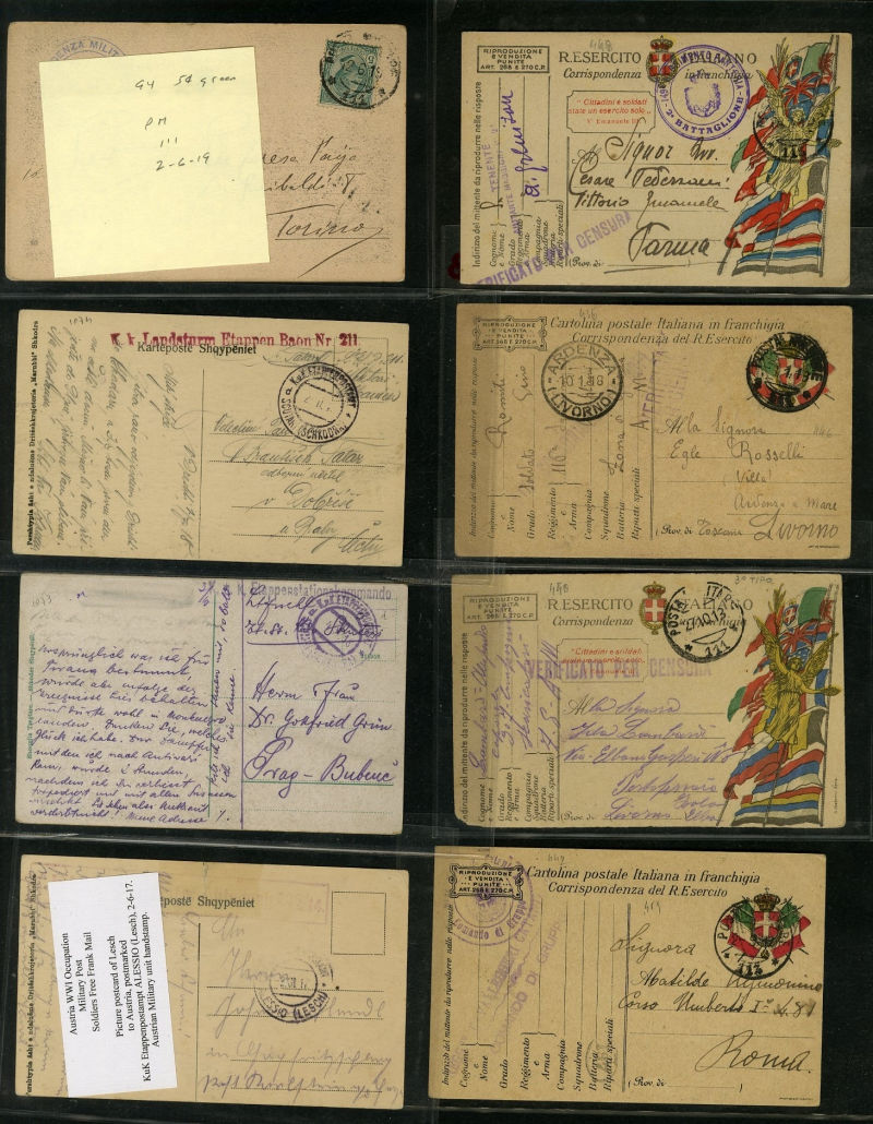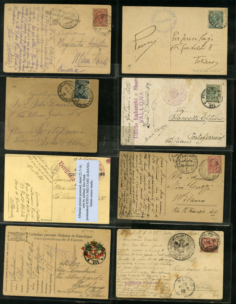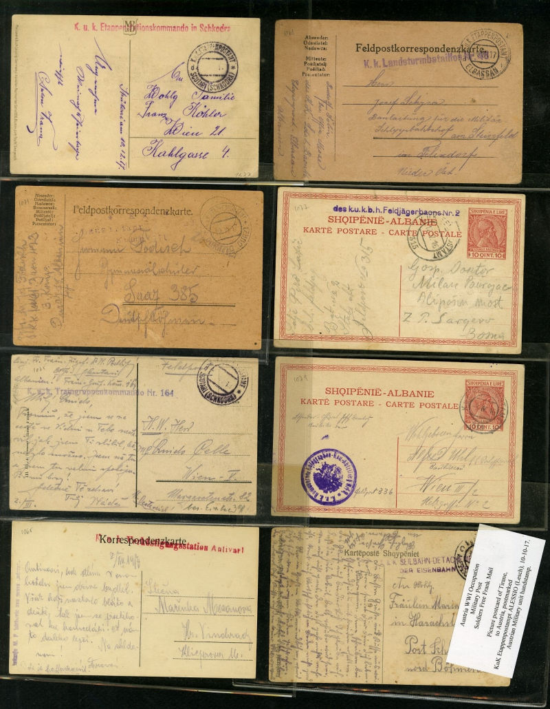 1338 c   imageLARGE LOTS AND COLLECTIONS ALBANIA 1917-19 selection of 34 covers or cards, mostly Italian and Austrian military markings used during WWI, mixed condition, useful and interesting (Image) (Image 2) (Image 3) (Image 4) (Image 5) (All Images)