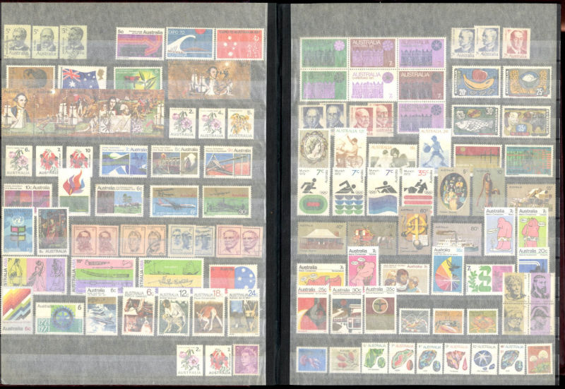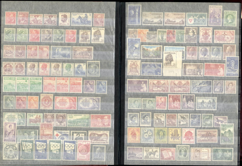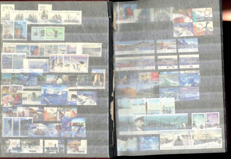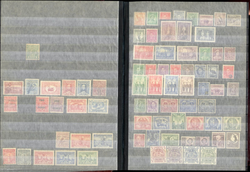 1340 O, og   imageLARGE LOTS AND COLLECTIONS AUSTRALIA 1927-2005 collection of used and unused singles and sets in a large stock book, Commemoratives and Regular Issues, including Robes to £1, Coat of Arms set of four, Navigators to £2, Decimal issues through 2005, also Australian Antarctic, Cocos and Christmas Islands, plus a varied selection of 50+ used singles from South Australia, including imperforate classics and Postal Fiscals, mixed condition, generally fine-v.f. (Image) (Image 2) (Image 3) (Image 4) (Image 5) (Image 6) (All Images)