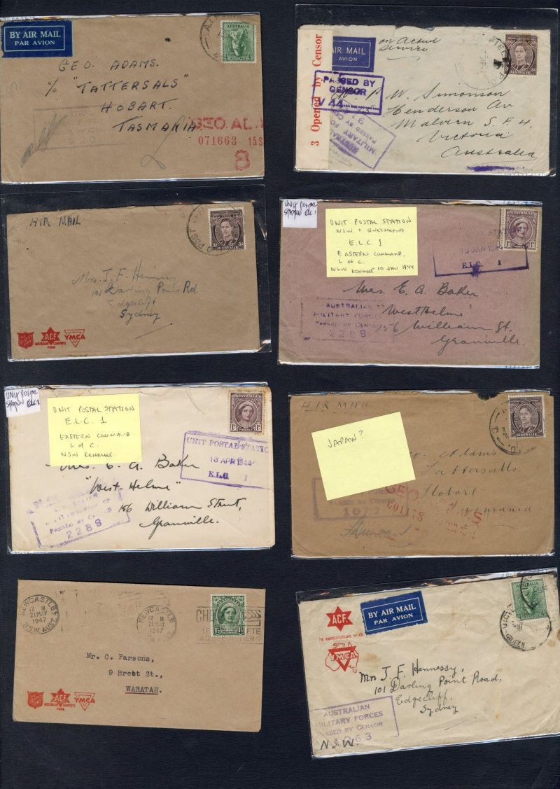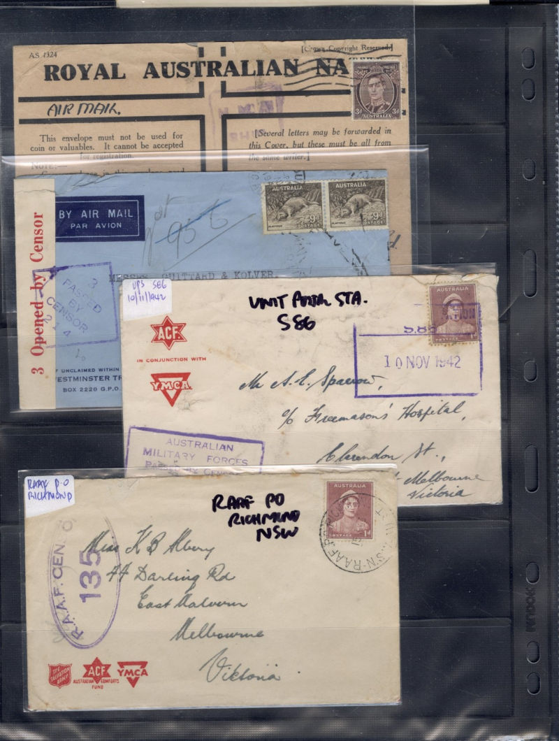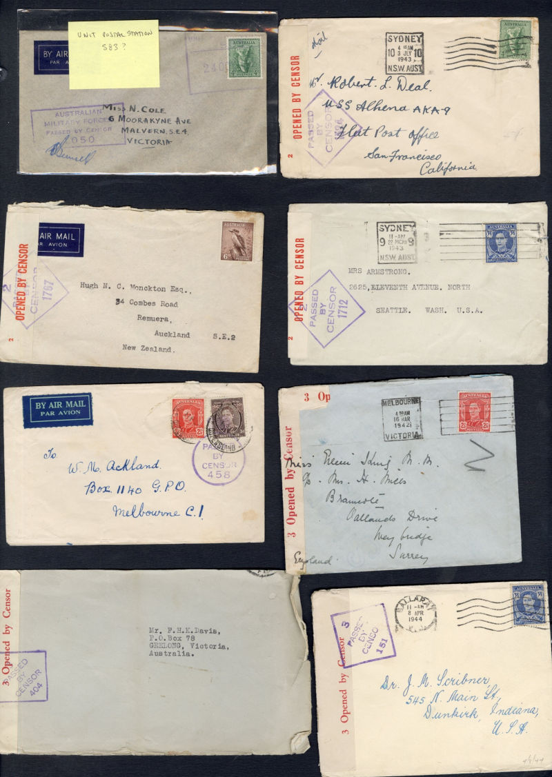 1341 c   imageLARGE LOTS AND COLLECTIONS AUSTRALIA 1935-60 200+ covers or cards, mostly from World War II era, nice variety of censors, military units, etc., fine-v.f. (Image) (Image 2) (Image 3) (Image 4) (Image 5) (All Images)