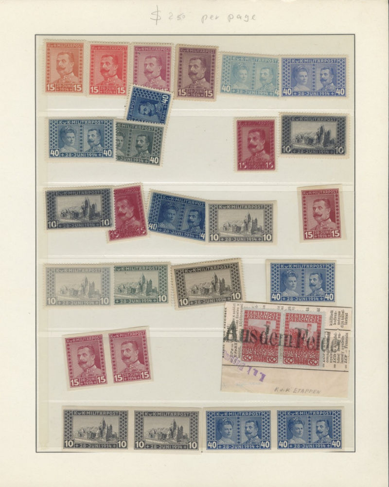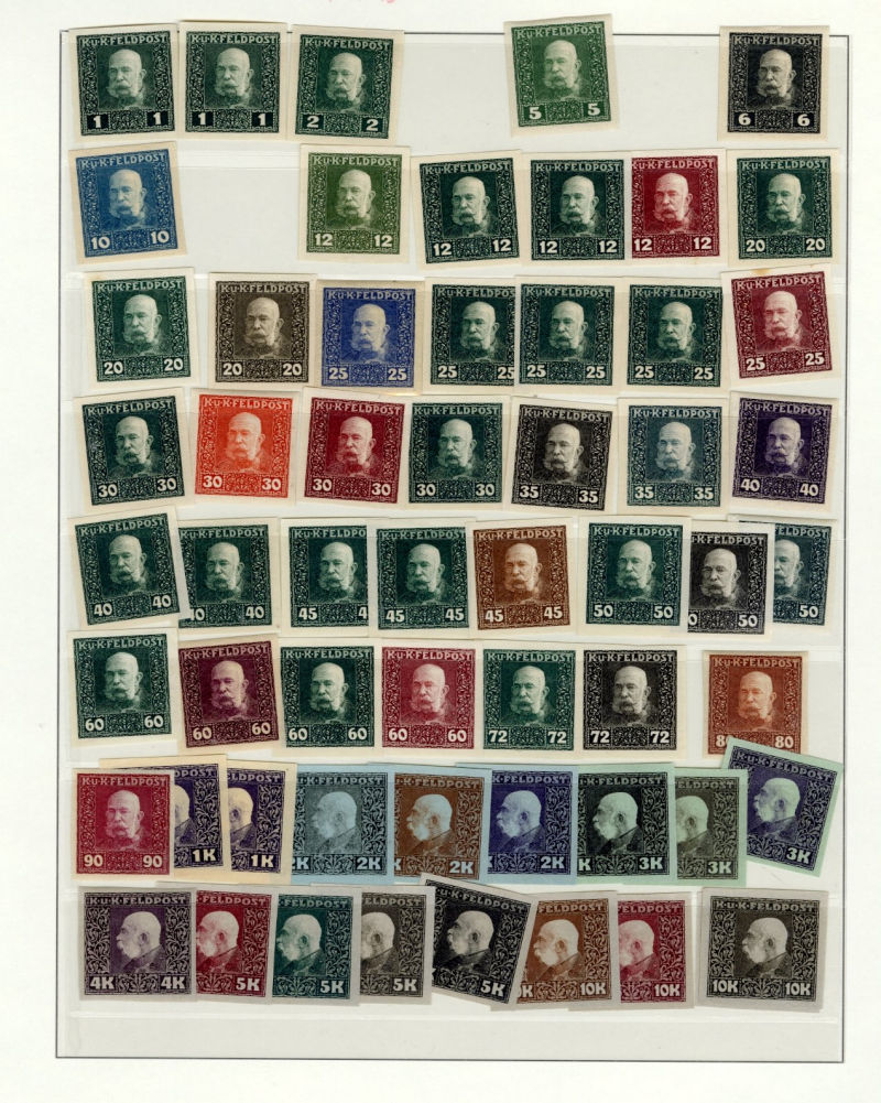 1342 O, og   imageLARGE LOTS AND COLLECTIONS AUSTRIA Military Stamps 1915-20 collection of hundreds, with 188 perf. and imperf. trial color proofs, overprint varieties, issues for Bosnia, Italy, Romania, Serbia, also Trentino overprints, few covers, varieties, etc., mixed condition (Image) (Image 2) (Image 3) (Image 4) (Image 5) (Image 6) (Image 7) (Image 8) (Image 9) (Image 10) (Image 11) (Image 12) (Image 13) (Image 14) (Image 15) (Image 16) (Image 17) (Image 18) (Image 19) (Image 20) (Image 21) (Image 22) (Image 23) (Image 24) (Image 25) (Image 26) (Image 27) (All Images)