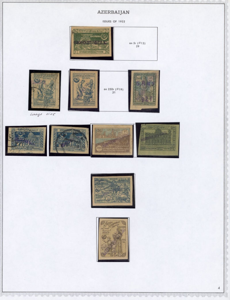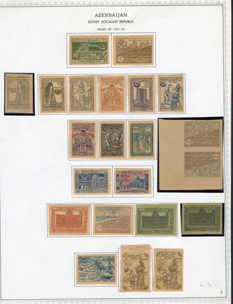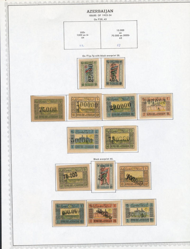 1344 O, og   imageLARGE LOTS AND COLLECTIONS AZERBAIJAN 1919-23 collection of 87 used and unused on pages, including surcharges and provisional overprints, mixed condition, mostly fine (Image) (Image 2) (Image 3) (Image 4) (Image 5) (Image 6) (All Images)