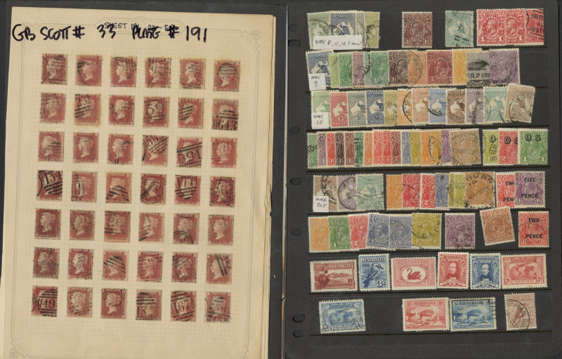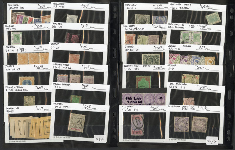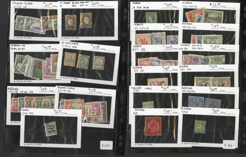 1348 O, og   imageLARGE LOTS AND COLLECTIONS BRITISH COMMONWEALTH 1860-1970 balance of a dealer's stock on cards or pages with Antigua, Australia and extensive Australian States, Bermuda, British Guiana, Ceylon, Cook Islands, Fiji, Hong Kong, Jamaica, Malta, Mauritius, St. Helena, Tonga, etc., also Great Britain Scott 33 sheet reconstruction, with used, unused and specimens noted, mixed condition with faults possible, owner's cat. $27,000+ (Image) (Image 2) (Image 3) (Image 4) (Image 5) (Image 6) (Image 7) (Image 8) (Image 9) (Image 10) (Image 11) (Image 12) (Image 13) (Image 14) (Image 15) (All Images)
