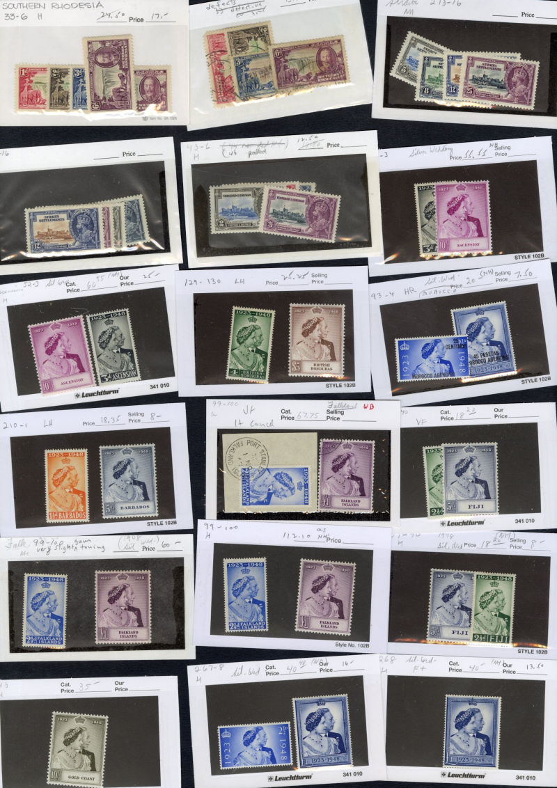 1352 O, og, nh   imageLARGE LOTS AND COLLECTIONS BRITISH COMMONWEALTH - Omnibus sets 1935-1966 duplicated selection of many hundreds of used and unused singles and sets on small Lighthouse presentation cards, with Silver Jubilee, Silver Wedding, UPU (including non British sets from Afghanistan, Germany, Peru, New Hebrides, San Marino, Lebanon, Syria, Venezuela), many better items, including Hong Kong, Falkland Islands, Malaysian States, etc., also 1966 Churchill sets (Image) (Image 2) (Image 3) (All Images)