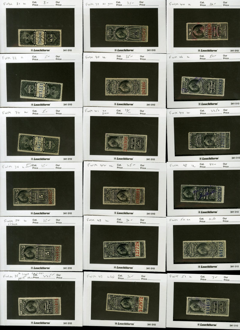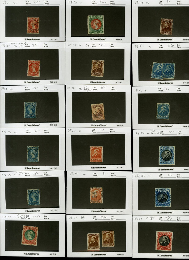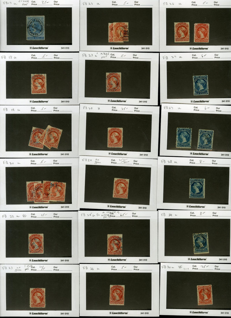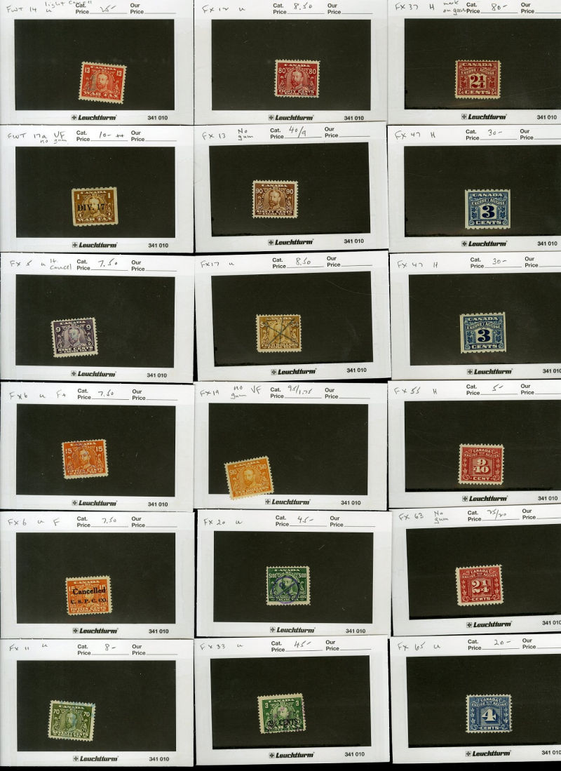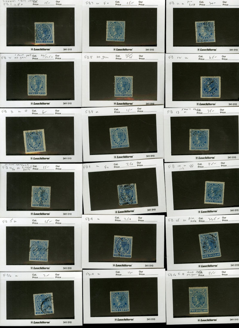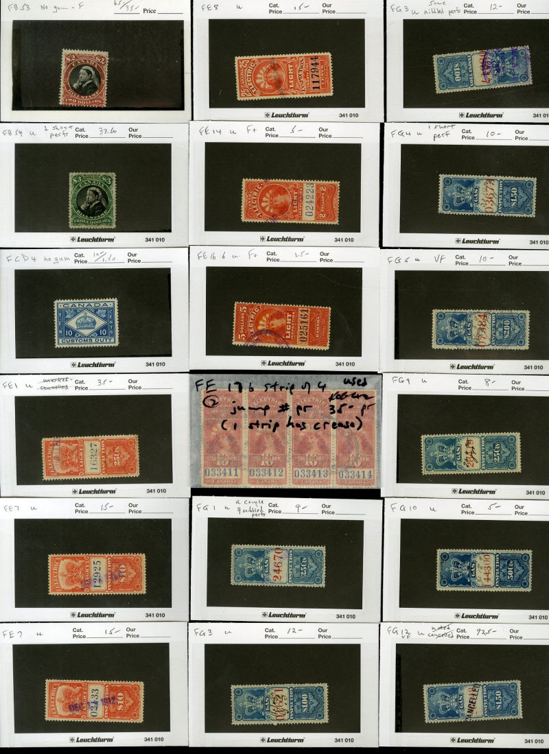 1357 O, og   imageLARGE LOTS AND COLLECTIONS CANADA Revenue Stamps 1864-1945 selection of used and unused Revenues, First Federal Bill Issue 1c-$3 (FB1/17), 1865 Second Issue to $1 (FB18-34), 1868 Third Bill Issue to $3 (FB37/54), Electric Light Inspection stamps, Supreme Court 20c, 25c, $1 (FSC2,3,8), War Tax stamps overprinted "Inland Revenue" (FWT1-6), Excise stamps, etc., mixed condition, many fine or better, high catalogue value, ex-Mary Farber ("Zillions of Stamps") (Image) (Image 2) (Image 3) (Image 4) (Image 5) (Image 6) (Image 7) (Image 8) (Image 9) (Image 10) (All Images)