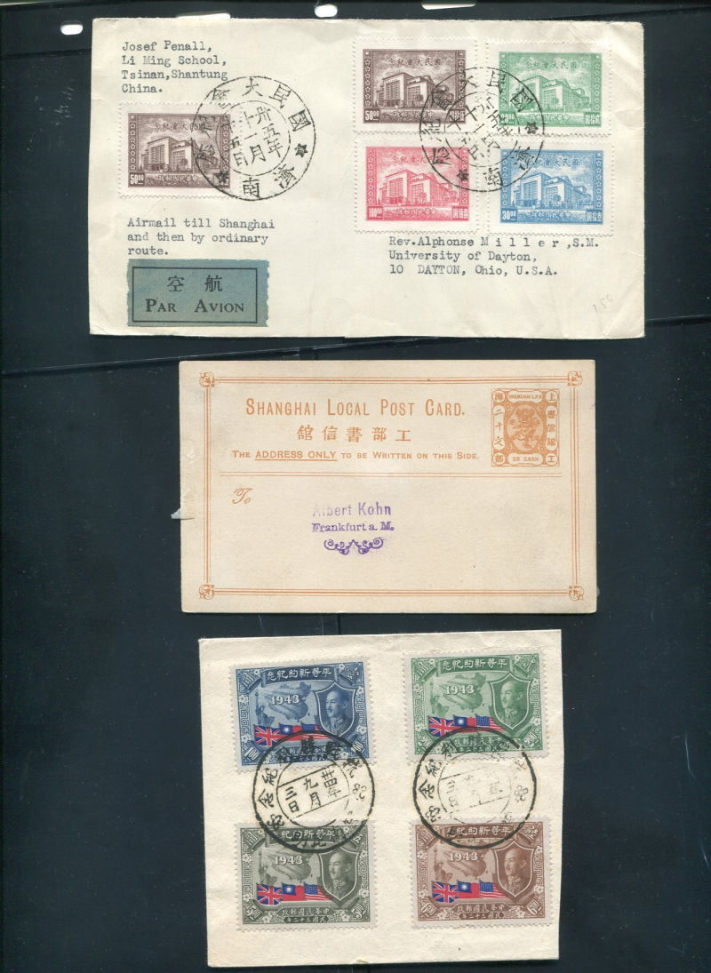 1359 c   imageLARGE LOTS AND COLLECTIONS CHINA - Covers and Postal history 1940 selection of 12 covers or cards, plus one front, variety of frankings, plus 1944 Refugee souvenir sheet (n.h., light crease), fine-v.f. (Image) (Image 2) (Image 3) (Image 4) (Image 5) (Image 6) (Image 7) (Image 8) (All Images)
