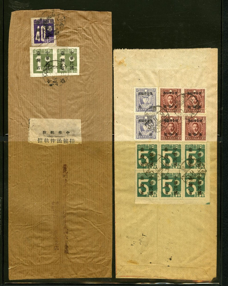 1360 c   imageLARGE LOTS AND COLLECTIONS CHINA - Covers and Postal history 1945-46 Taiwan Province, selection of four covers, franked with a variety of Japanese overprinted stamps, also combinations, fine-v.f. (Image) (Image 2) (All Images)