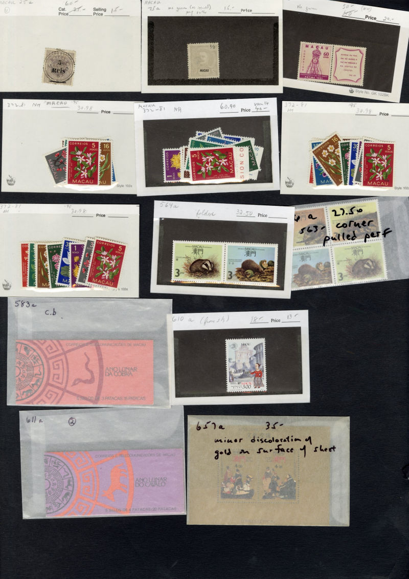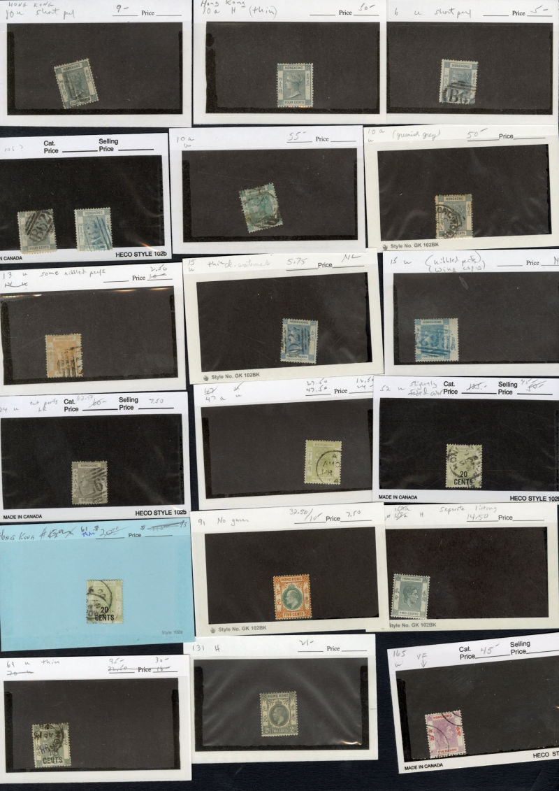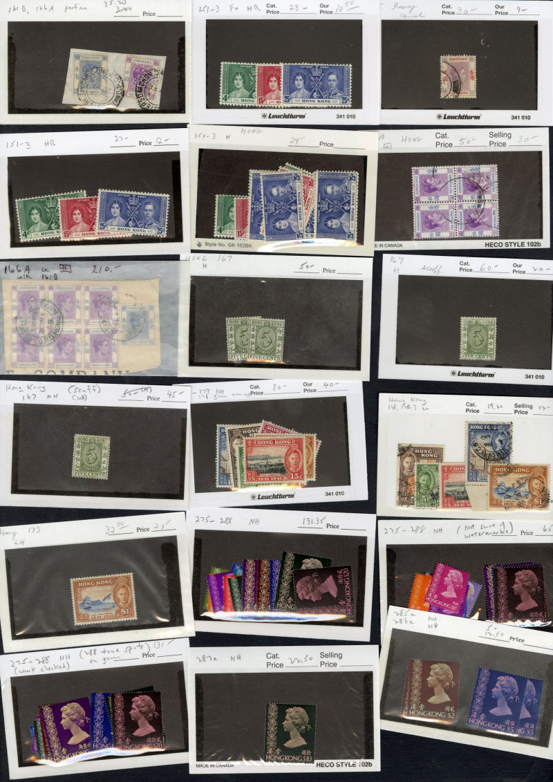 1404 O, og   imageLARGE LOTS AND COLLECTIONS HONG KONG 1863-2007 large accumulation of many hundreds of singles and sets in glassines and on small presentation cards, used and unused singles and sets, some early Queen Victoria, then mostly King George VI and QEII, few better definitives and high values, also small group of Macao, including early items, mixed condition, useful lot, ex-Mary Farber ("Zillions of Stamps") (Image) (Image 2) (Image 3) (All Images)