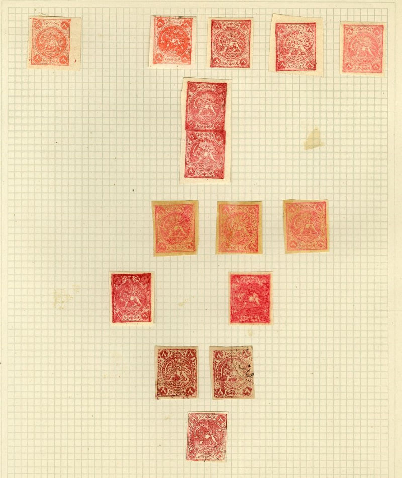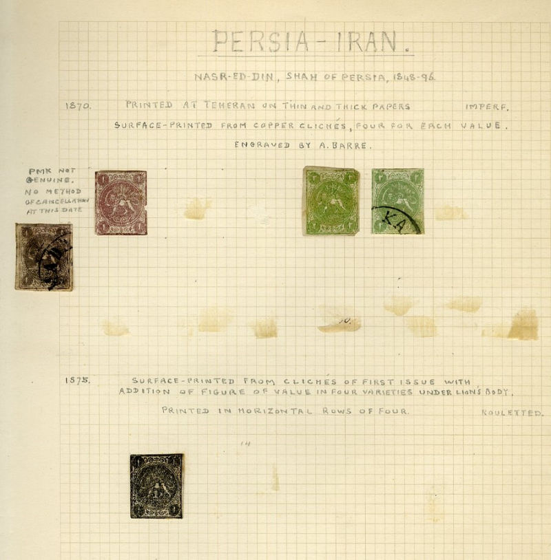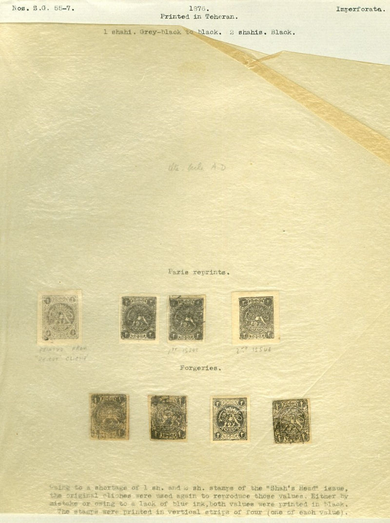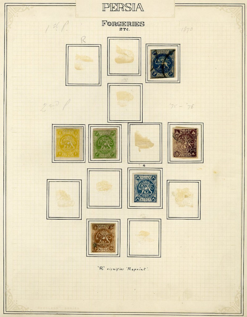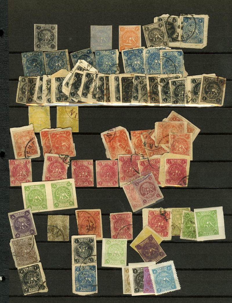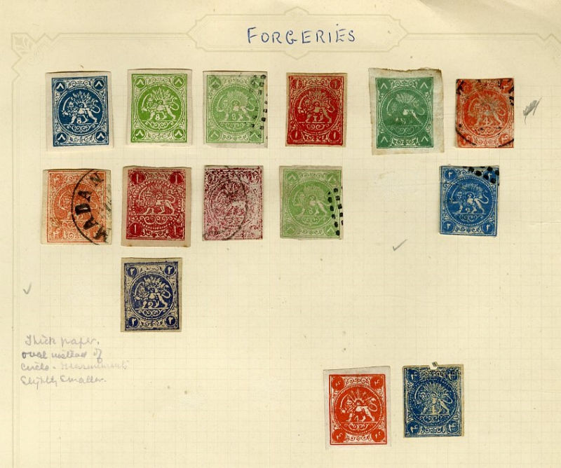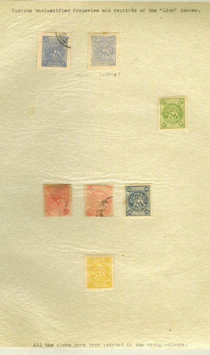 1413   imageLARGE LOTS AND COLLECTIONS IRAN 1868-1879 a large assembly of forgeries of Persian Lion stamps mounted on loose papers and in stock cards, used and unused, with many unknown types of forgeries/reprints, ideal for classification and research (Image) (Image 2) (Image 3) (Image 4) (Image 5) (Image 6) (Image 7) (Image 8) (Image 9) (Image 10) (Image 11) (Image 12) (Image 13) (Image 14) (Image 15) (Image 16) (Image 17) (Image 18) (Image 19) (Image 20) (Image 21) (Image 22) (All Images)