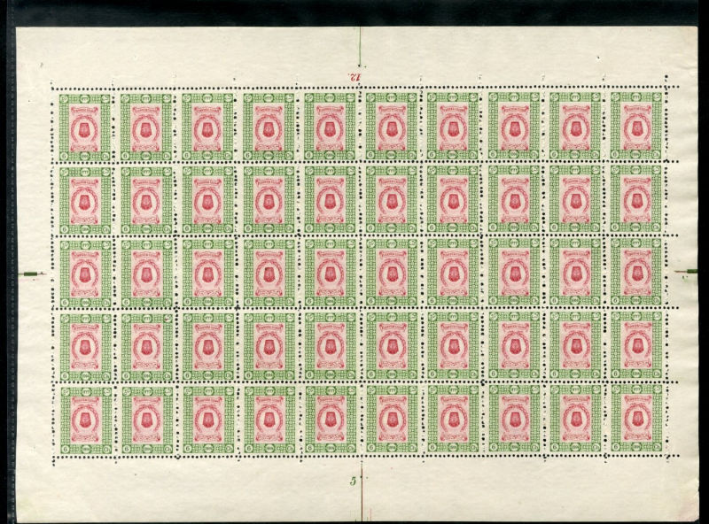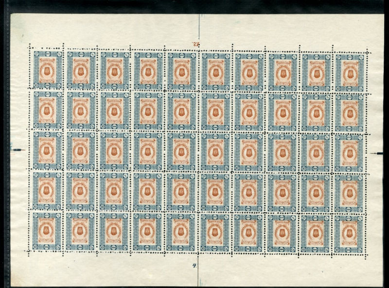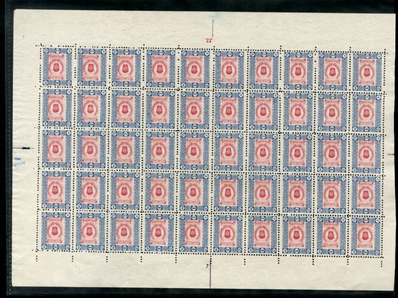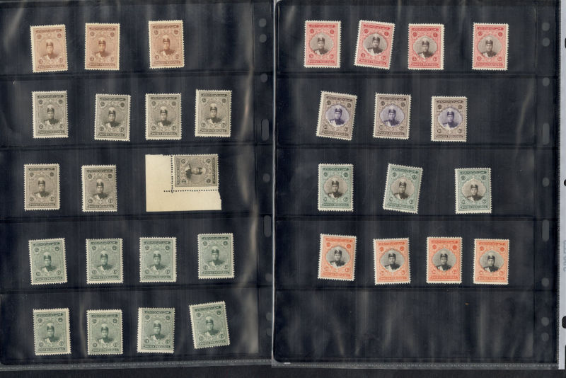1418 nh, bl   imageLARGE LOTS AND COLLECTIONS IRAN (560/570var) 1915 Coronation Issue, 1ch-24c Imperial Crown, nine different sheets of 50, printed on both sides, one side each, with centers inverted, fine-v.f., attractive group (Image) (Image 2) (Image 3) (Image 4) (Image 5) (Image 6) (Image 7) (Image 8) (Image 9) (All Images)