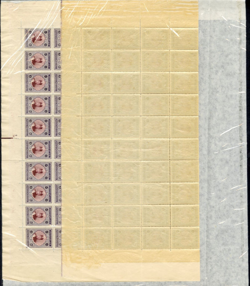 1420 nh, bl   imageLARGE LOTS AND COLLECTIONS IRAN (674-80) 1924 Ahmad Shah Qajar, 1kr-30kr, seven different sheets of 100, n.h., some perf. separations, fine-v.f. (catalogued as hinged singles) cat. Value $18000 (Image) (Image 2) (Image 3) (Image 4) (Image 5) (All Images)