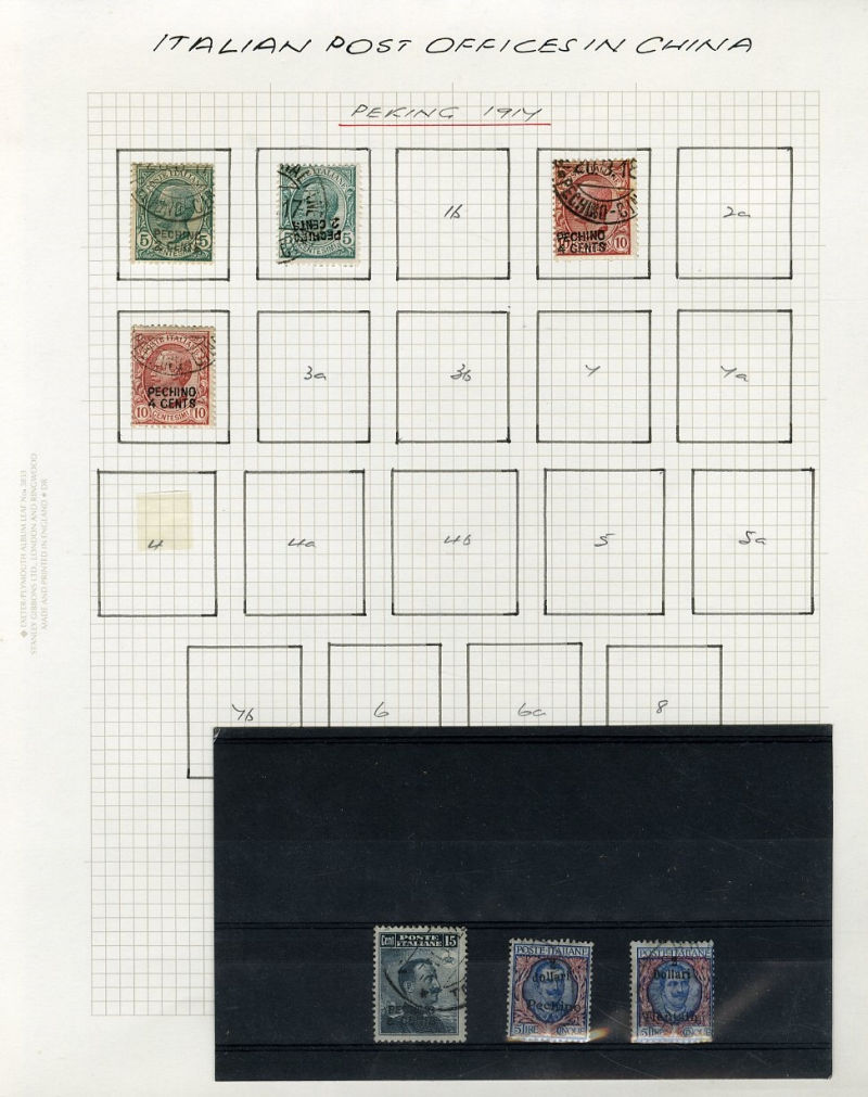 1431 O   imageLARGE LOTS AND COLLECTIONS ITALIAN OFFICES IN CHINA 1914-19 collection of used singles on pages, overprints and surcharges for Pechino and Tientsin, with "2 dollari" and "2 DOLLARI" values, Postage Dues and Special Delivery, mostly fine, cat. $10,000+ (Image) (Image 2) (Image 3) (Image 4) (Image 5) (Image 6) (All Images)