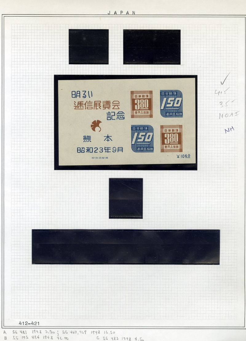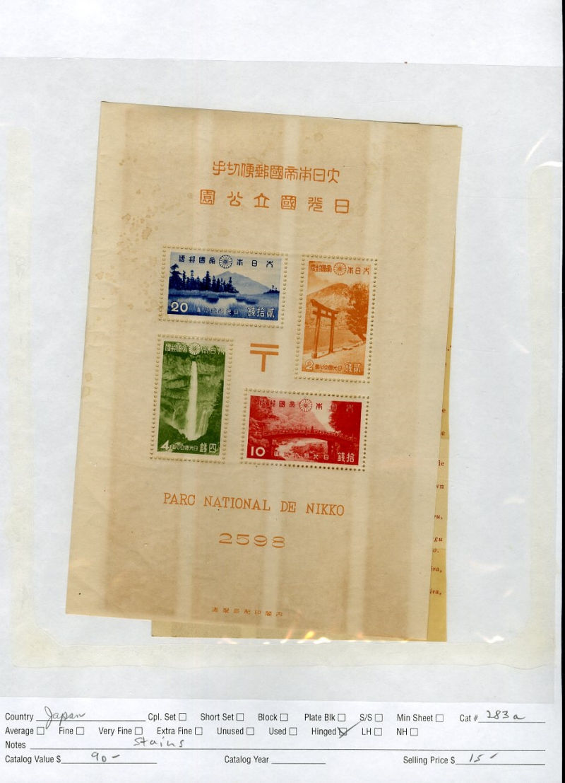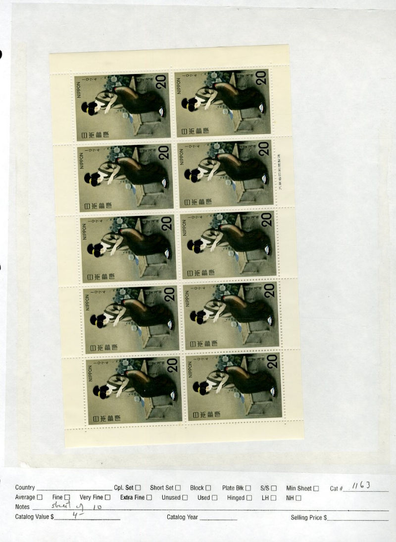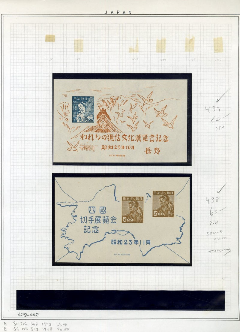 1434 og, nh, bl   imageLARGE LOTS AND COLLECTIONS JAPAN (283a/2825) 1939-2002 souvenir sheets in two binders, selection with National Parks, Lottery, Definitives, Greetings sheetlets of 10 or larger, special issues, etc., earlier items l.h. or n.h., later issues n.h., fine-v.f. (Image) (Image 2) (Image 3) (Image 4) (Image 5) (Image 6) (Image 7) (Image 8) (Image 9) (Image 10) (Image 11) (Image 12) (Image 13) (Image 14) (Image 15) (Image 16) (Image 17) (Image 18) (Image 19) (Image 20) (Image 21) (Image 22) (Image 23) (Image 24) (Image 25) (Image 26) (Image 27) (Image 28) (Image 29) (Image 30) (Image 31) (Image 32) (Image 33) (Image 34) (All Images)