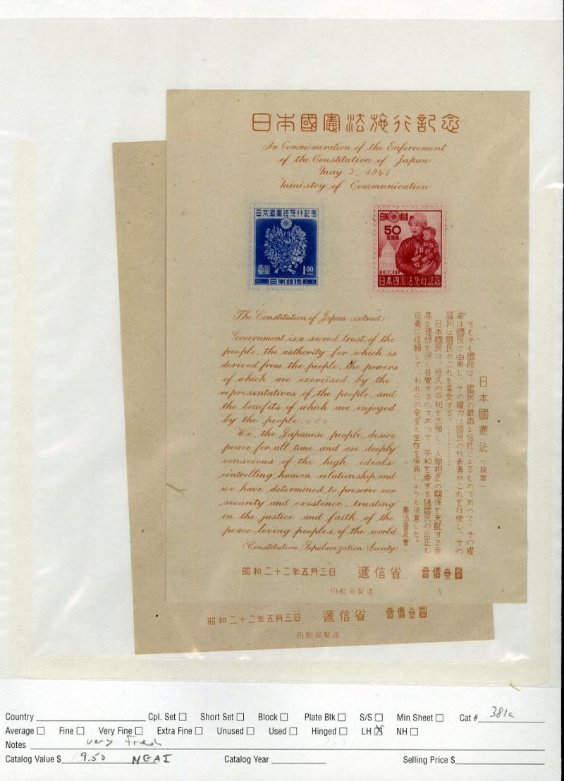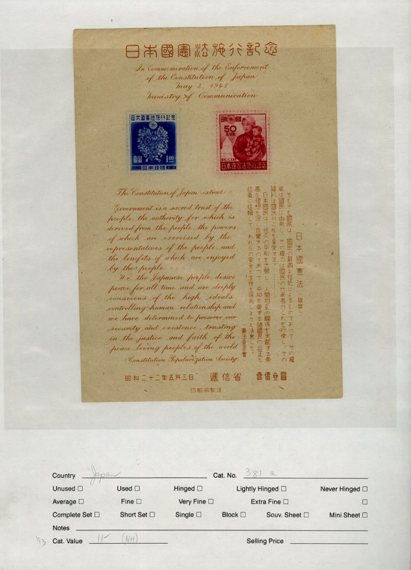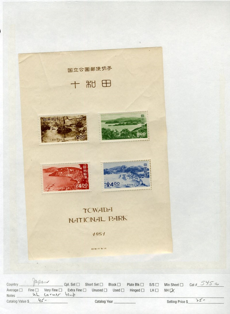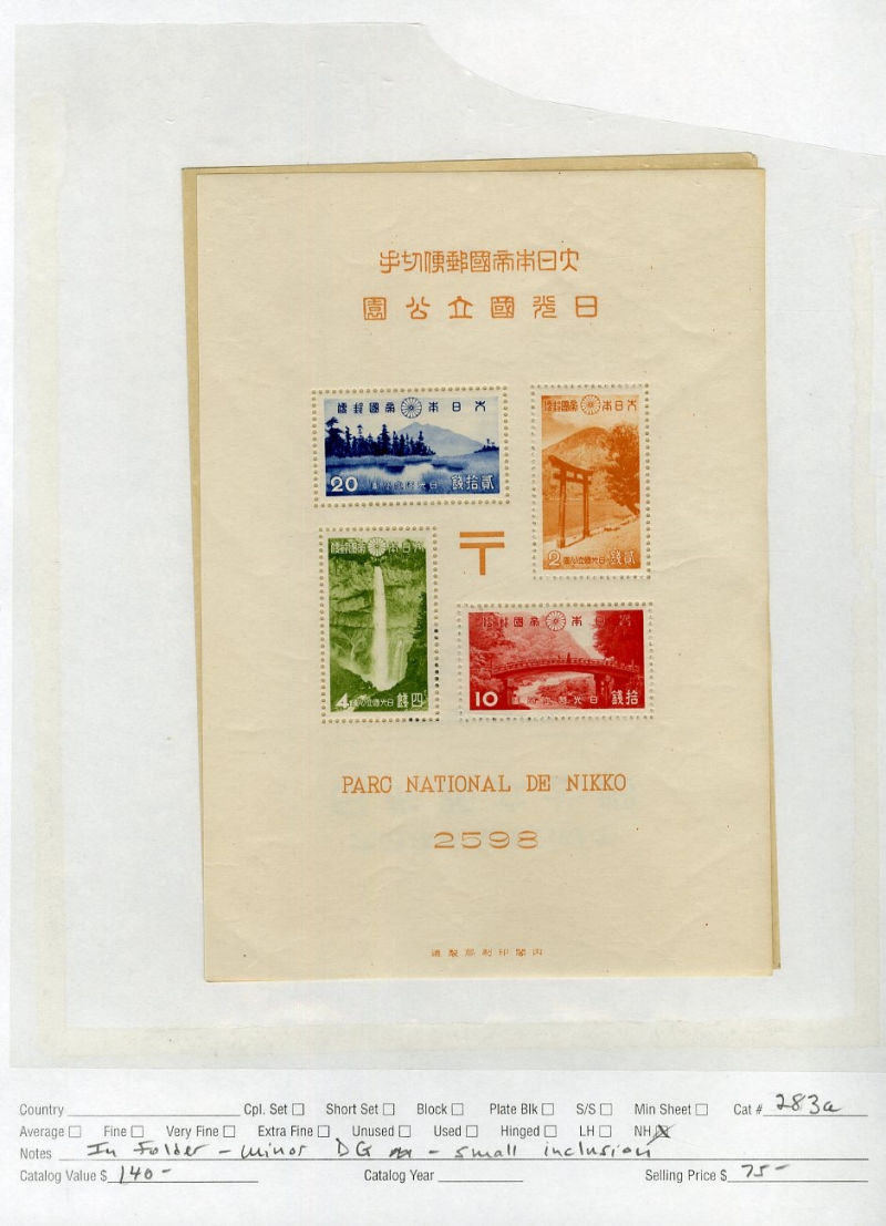 1434 og, nh, bl   imageLARGE LOTS AND COLLECTIONS JAPAN (283a/2825) 1939-2002 souvenir sheets in two binders, selection with National Parks, Lottery, Definitives, Greetings sheetlets of 10 or larger, special issues, etc., earlier items l.h. or n.h., later issues n.h., fine-v.f. (Image) (Image 2) (Image 3) (Image 4) (Image 5) (Image 6) (Image 7) (Image 8) (Image 9) (Image 10) (Image 11) (Image 12) (Image 13) (Image 14) (Image 15) (Image 16) (Image 17) (Image 18) (Image 19) (Image 20) (Image 21) (Image 22) (Image 23) (Image 24) (Image 25) (Image 26) (Image 27) (Image 28) (Image 29) (Image 30) (Image 31) (Image 32) (Image 33) (Image 34) (All Images)