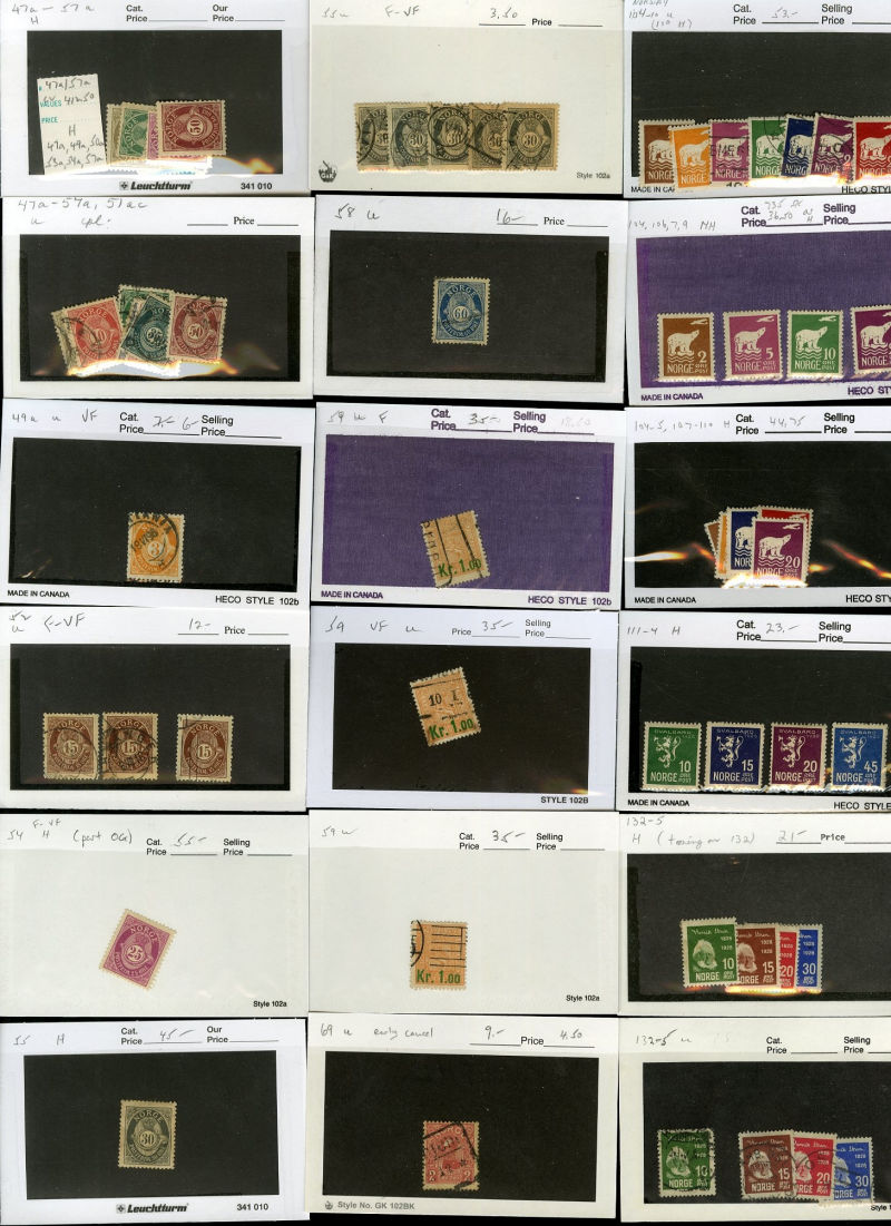 1461 O, og   imageLARGE LOTS AND COLLECTIONS NORWAY (1/47) 1856-1960 selection of used and unused singles and sets, good showing of early King Oscar, with shades and cancels, Lion, Numeral and some later issues, Semi-Postals, etc., mixed condition, faults noted, cat. $10,000+, ex-Mary Farber ("Zillions of Stamps") (Image) (Image 2) (Image 3) (Image 4) (Image 5) (Image 6) (Image 7) (Image 8) (All Images)