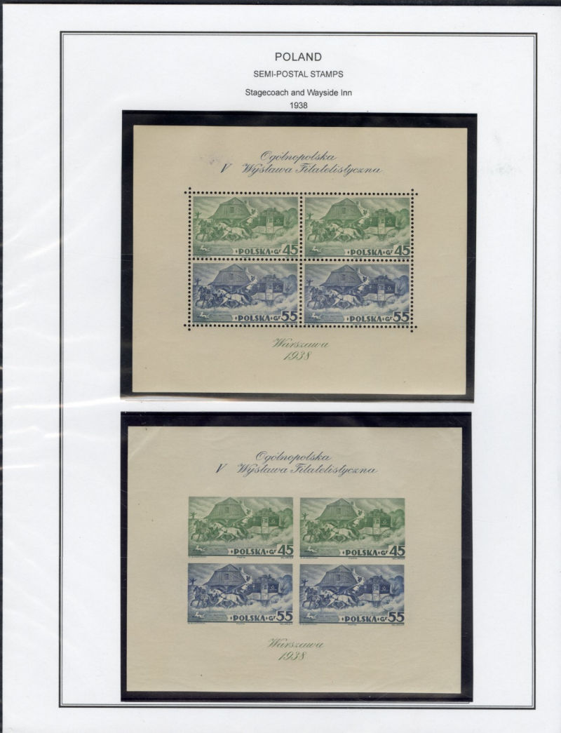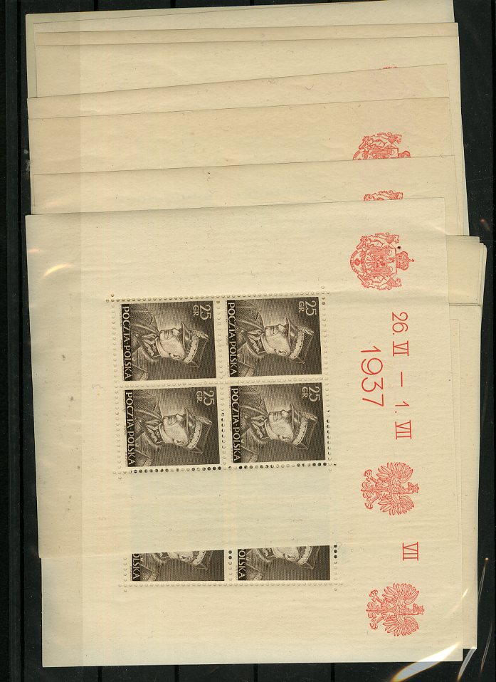 1464 nh, bl   imageLARGE LOTS AND COLLECTIONS POLAND (314-16) 1937 King Carol of Romania visit to Poland, 7 sets of souvenir sheets of four, n.h., v.f., cat. Value $840 (Image)