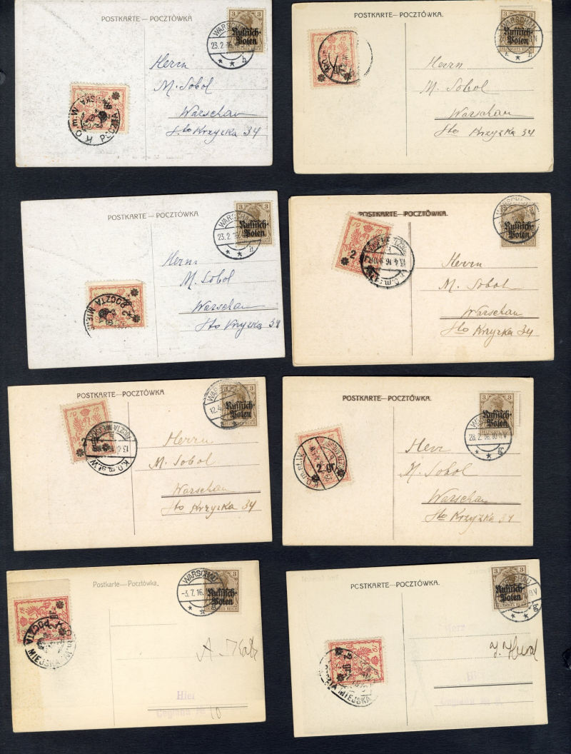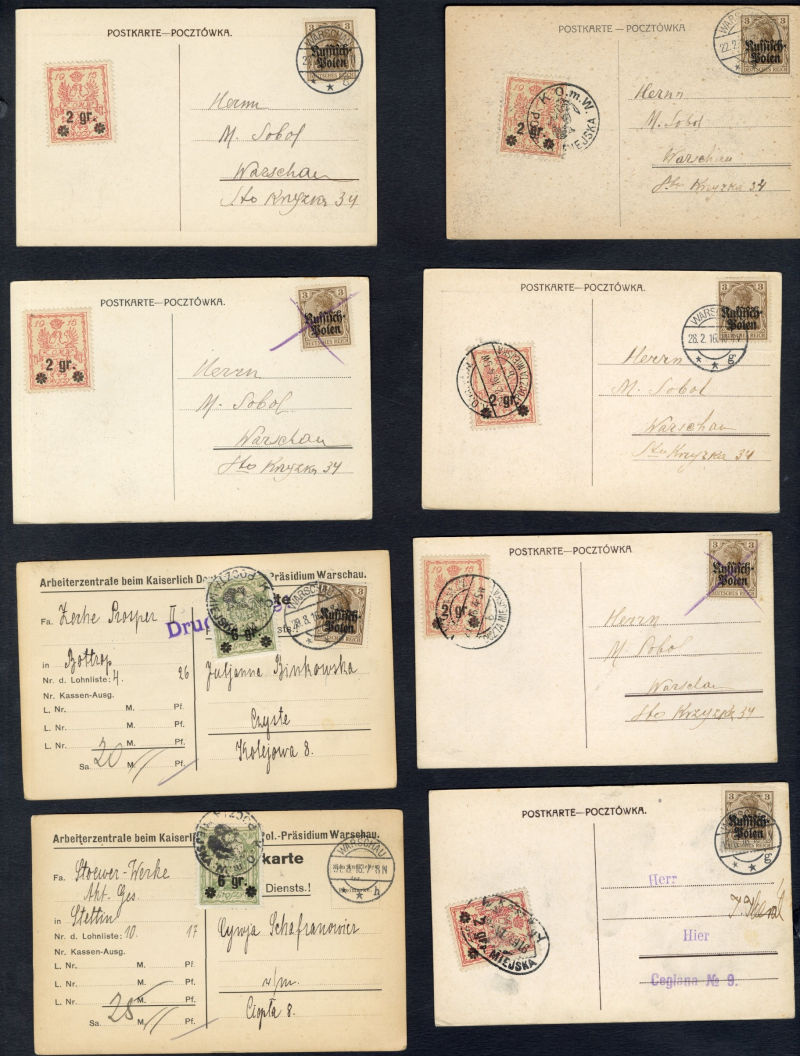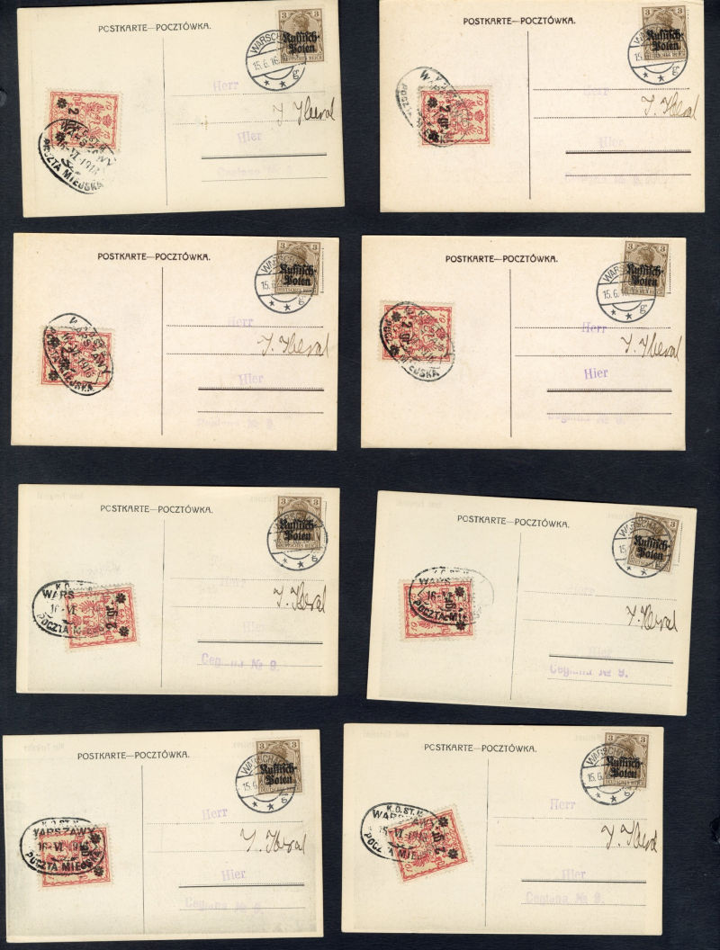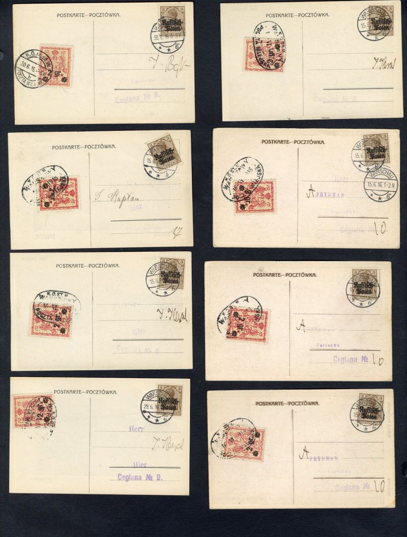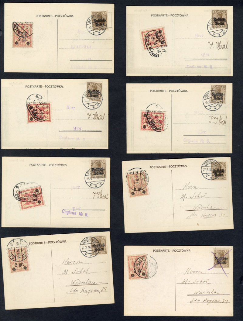 1467 c   imageLARGE LOTS AND COLLECTIONS POLAND - Covers and Postal History Local Issues 1916 Warszawa, surcharged 2gr, selection of 130+, each tied by a local pmk on ppcs (pre-WWI Warsaw), used in combination with 3pf "Russisch Polen", addressed locally, some duplication, mostly fine-v.f. (Image) (Image 2) (Image 3) (Image 4) (Image 5) (Image 6) (Image 7) (Image 8) (Image 9) (Image 10) (Image 11) (Image 12) (Image 13) (Image 14) (Image 15) (All Images)