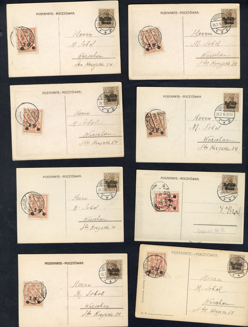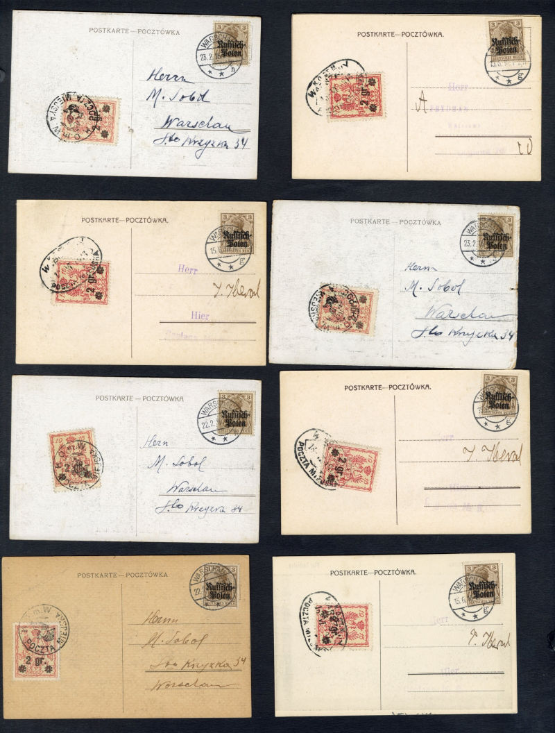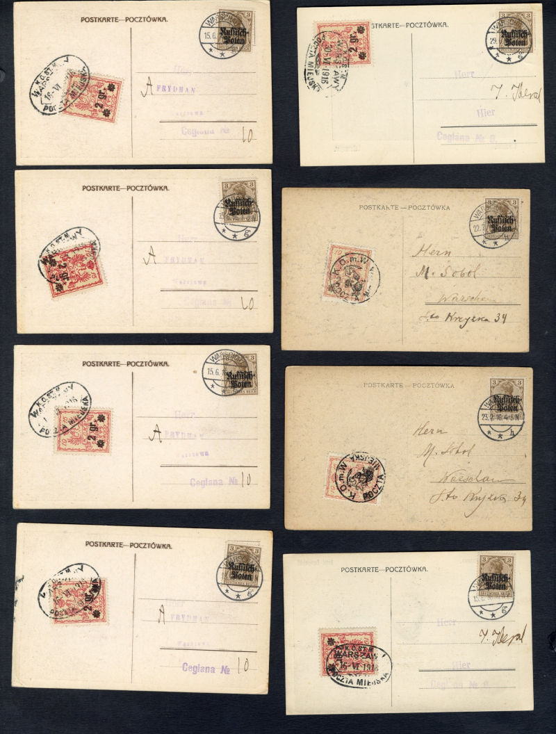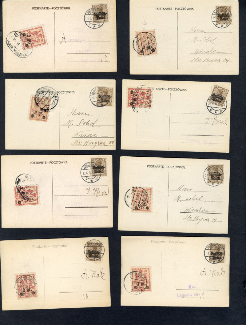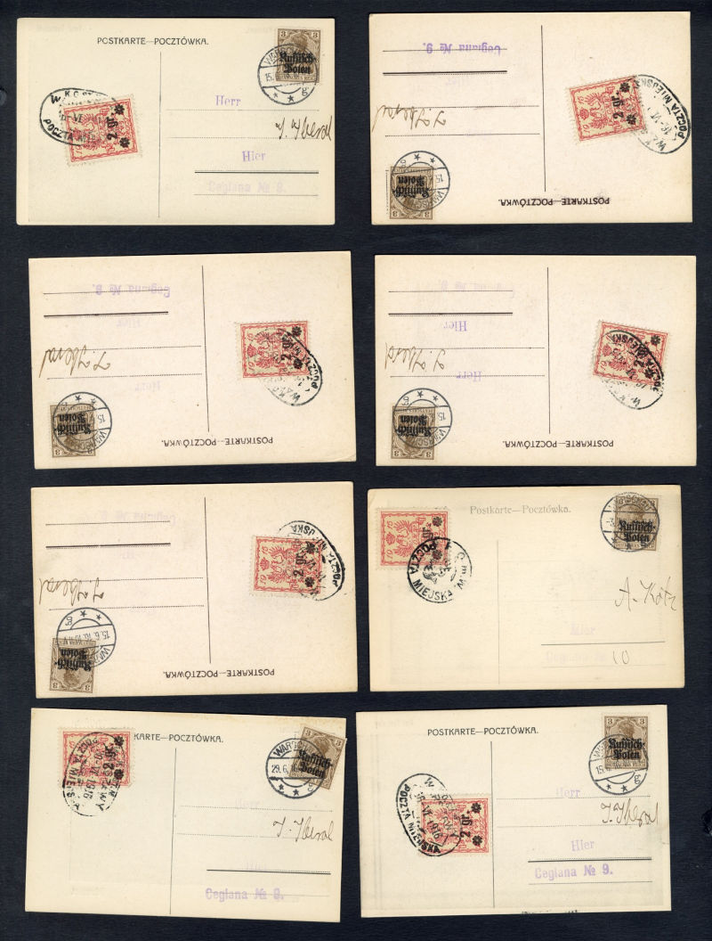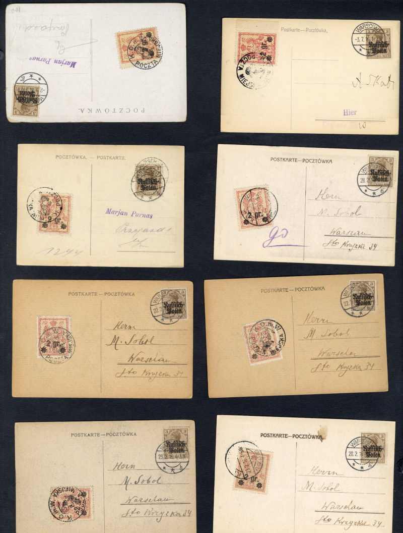 1467 c   imageLARGE LOTS AND COLLECTIONS POLAND - Covers and Postal History Local Issues 1916 Warszawa, surcharged 2gr, selection of 130+, each tied by a local pmk on ppcs (pre-WWI Warsaw), used in combination with 3pf "Russisch Polen", addressed locally, some duplication, mostly fine-v.f. (Image) (Image 2) (Image 3) (Image 4) (Image 5) (Image 6) (Image 7) (Image 8) (Image 9) (Image 10) (Image 11) (Image 12) (Image 13) (Image 14) (Image 15) (All Images)