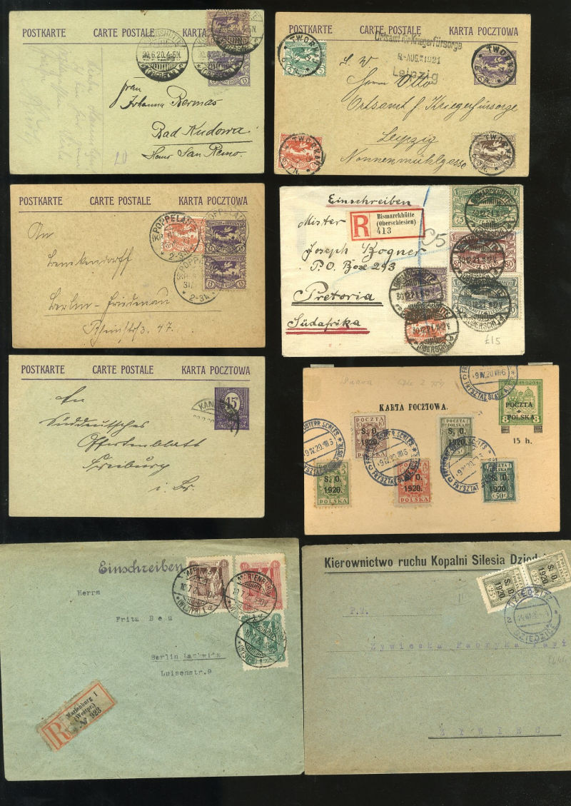1468 c   imageLARGE LOTS AND COLLECTIONS POLAND - Plebiscite Issues (41-50) 1920 selection of 28 covers or cards, including Eastern Silesia (10), franked with multiple "S.O. 1920" overprints, various origins (Cieszyn, Bielitz, Dziedzic) and destinations including Switzerland, Austria and Finland; Upper Silesia (11), used from Oppeln, Groschowitz, Kandrzin, Gleiwitz, Bismarckhutte, etc.; Marienwerder (5) and Allenstein (2), many Registered, mostly fine or better (Image) (Image 2) (Image 3) (Image 4) (Image 5) (All Images)