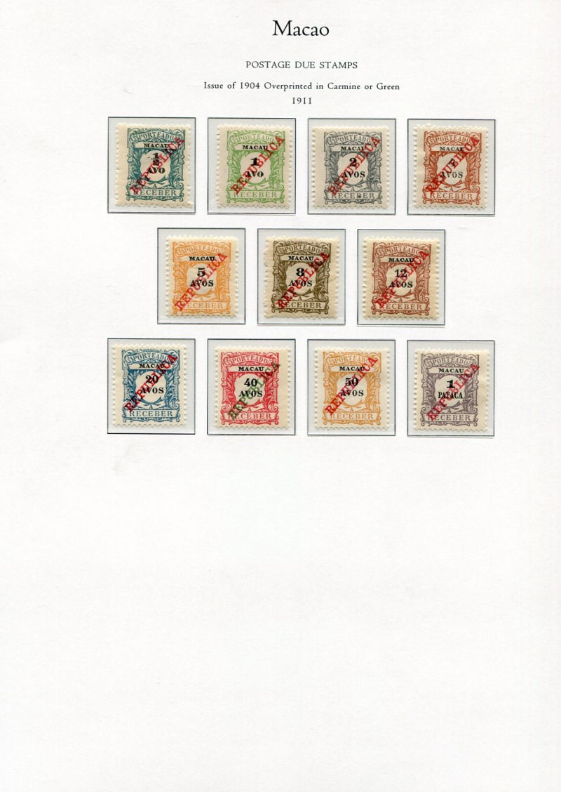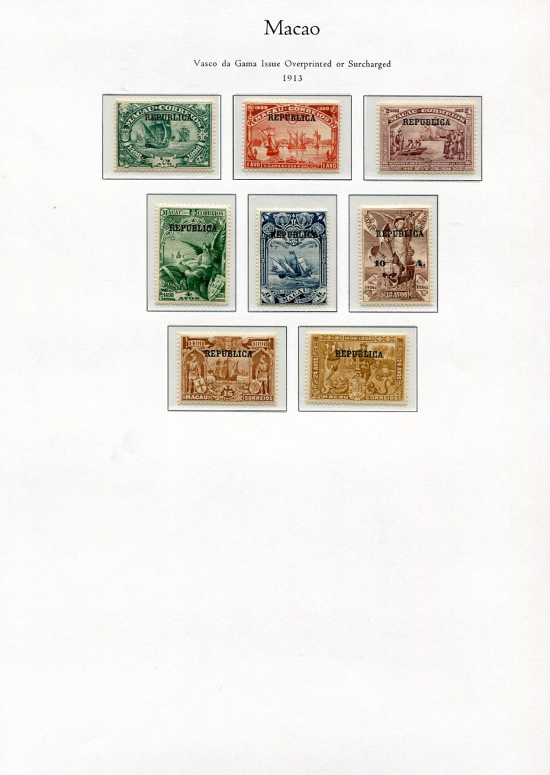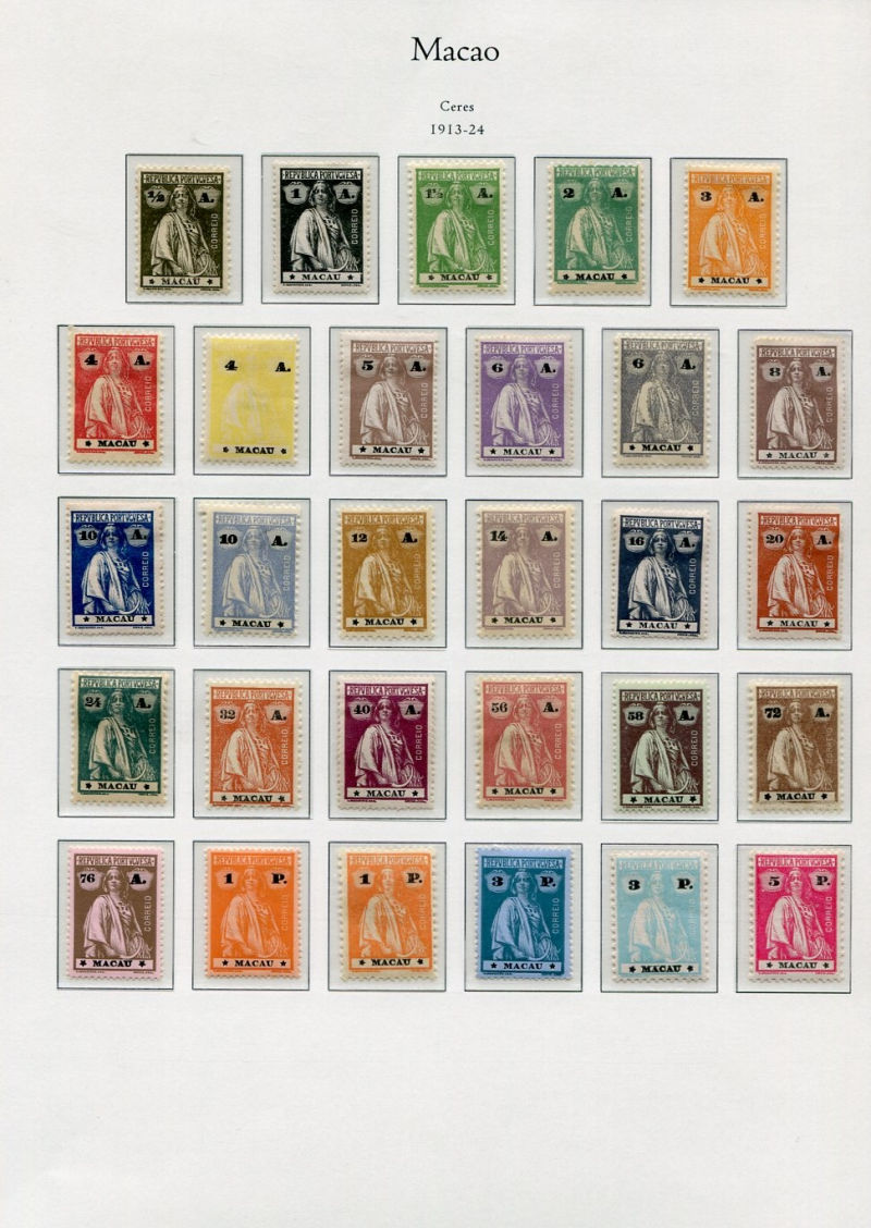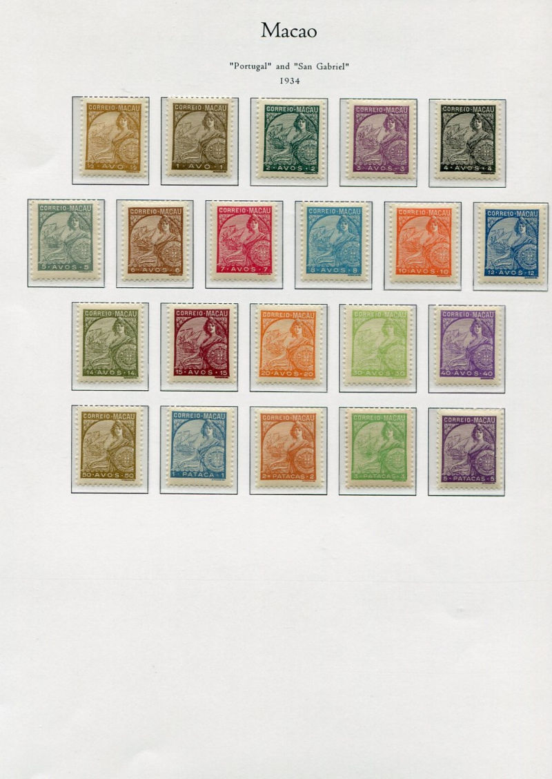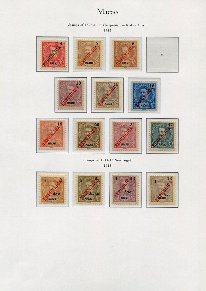 1470 og   imageLARGE LOTS AND COLLECTIONS Macao 1884-1938 comprehensive collection on PALO album pages, unused, missing only the items offered individually in this sale and a few others, Portuguese Crown perf. 13 1/2 and 12 1/2, numerous surcharges and overprints, local provisionals, perforation varieties on 1887 issue, Kings Luiz and Carlos, Provisorio surcharges, Vasco da Gama and other commemoratives, 1898-1910 King Carlos, surcharges and overprints in various colors, Republica overprints, Ceres issues, 1934 San Gabriel, Common Designs, Postage Dues and Newspaper stamps, minor flaws possible, generally fine-v.f., cat. $15,000+ (Image) (Image 2) (Image 3) (Image 4) (Image 5) (Image 6) (Image 7) (Image 8) (Image 9) (Image 10) (Image 11) (Image 12) (Image 13) (Image 14) (Image 15) (Image 16) (Image 17) (Image 18) (Image 19) (Image 20) (Image 21) (Image 22) (Image 23) (Image 24) (Image 25) (Image 26) (All Images)