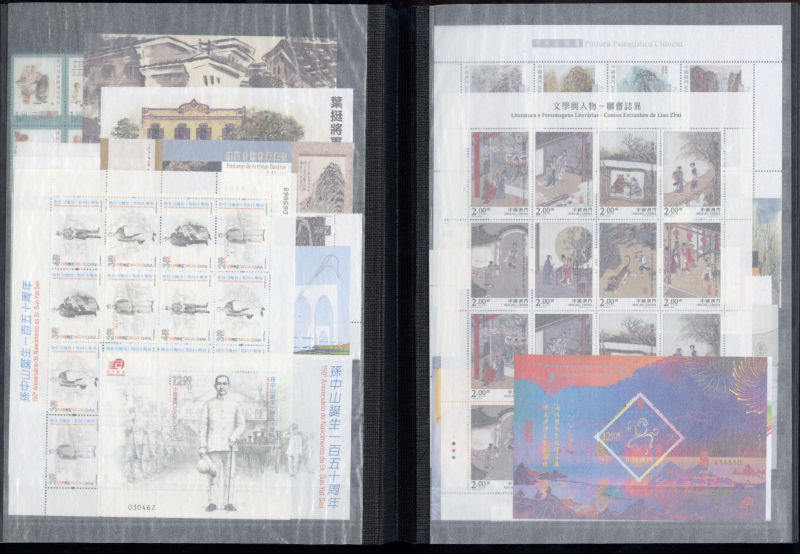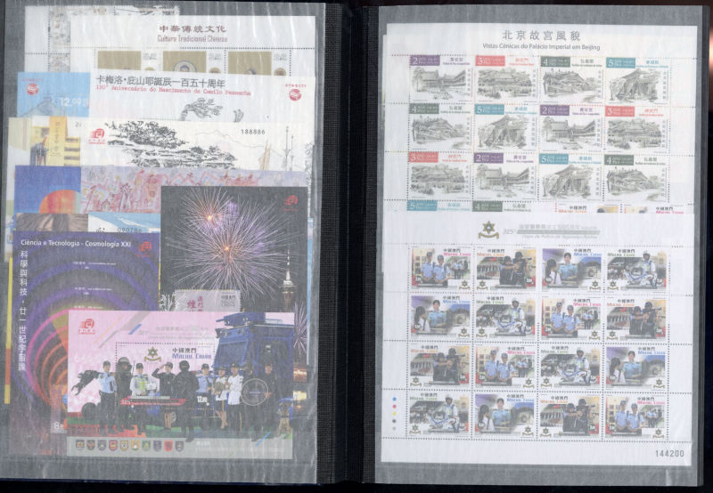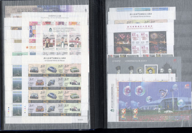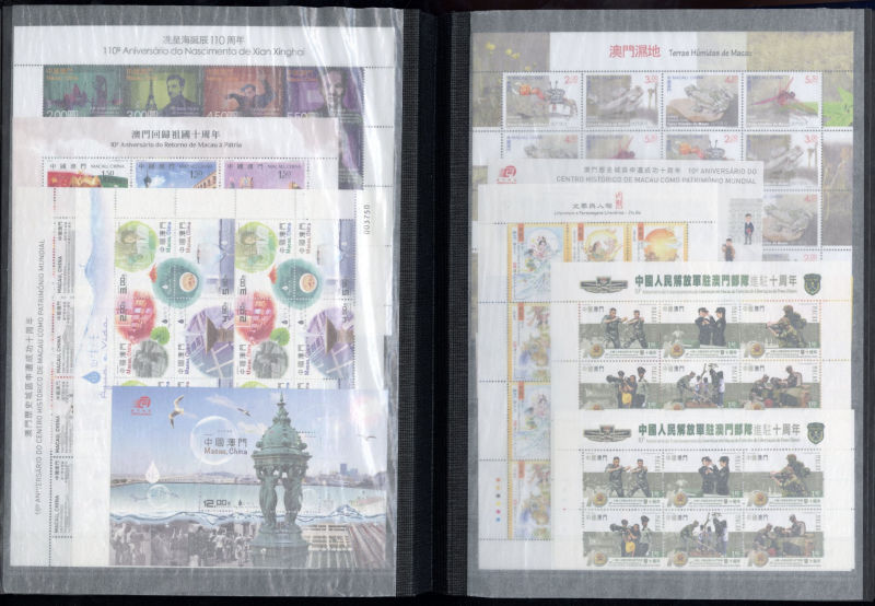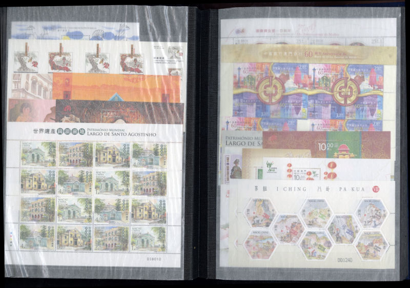 1471 nh, bl   imageLARGE LOTS AND COLLECTIONS Macao 1999-2018 (Macao, China) issues, sheets, souvenir sheets, booklets, sets, blocks, miniature sheetlets, etc., collection in a large stock book, n.h., v.f. (Mi.Euro 8,790) (Image) (Image 2) (Image 3) (Image 4) (Image 5) (Image 6) (Image 7) (Image 8) (Image 9) (Image 10) (Image 11) (Image 12) (Image 13) (Image 14) (Image 15) (Image 16) (Image 17) (Image 18) (Image 19) (Image 20) (Image 21) (Image 22) (Image 23) (Image 24) (Image 25) (Image 26) (Image 27) (All Images)