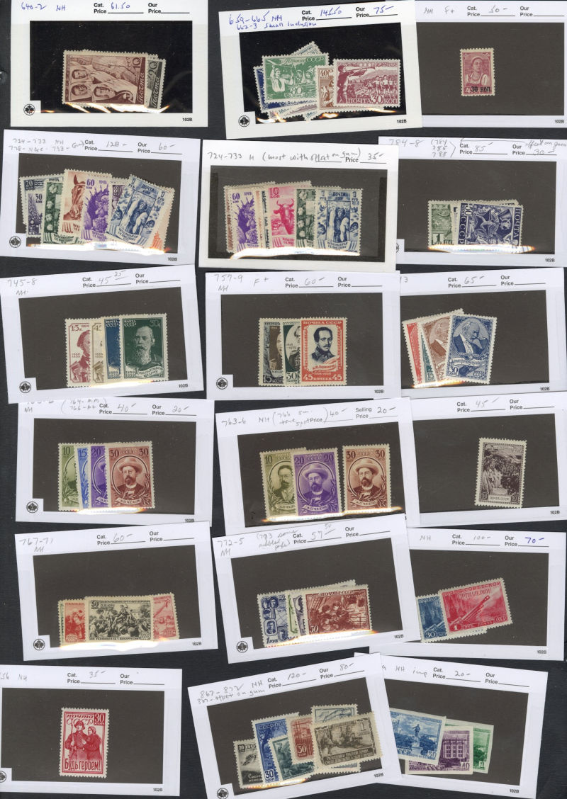 1474 O   imageLARGE LOTS AND COLLECTIONS RUSSIA (698-701,984A-86D,C45-47) 1934-45 Sports, 5k-20k, 300 of each, 1945 Medals imperf. (200 sets), 1934 Civil Aviation, 5k-20k, 42 of each, mostly in large multiples, canceled to order, n.h., some slightly stuck-down, otherwise v.f., cat. Value $2617 (Image) (Image 2) (All Images)