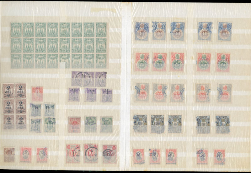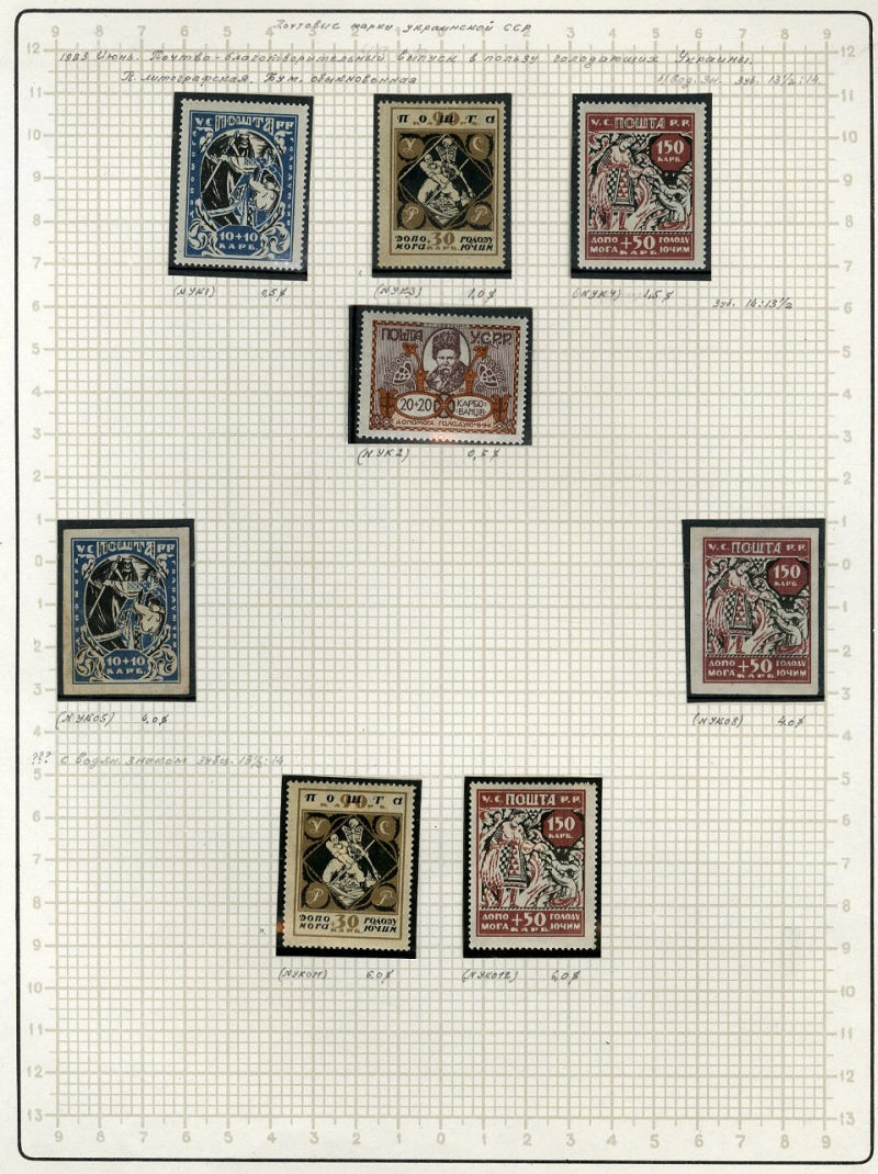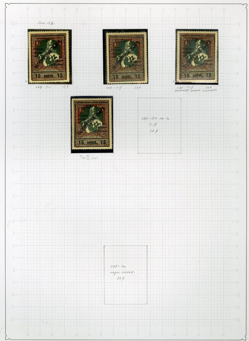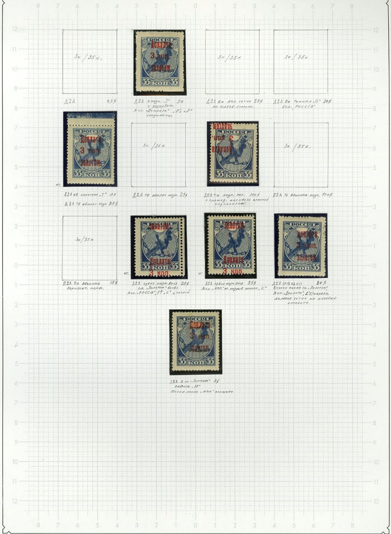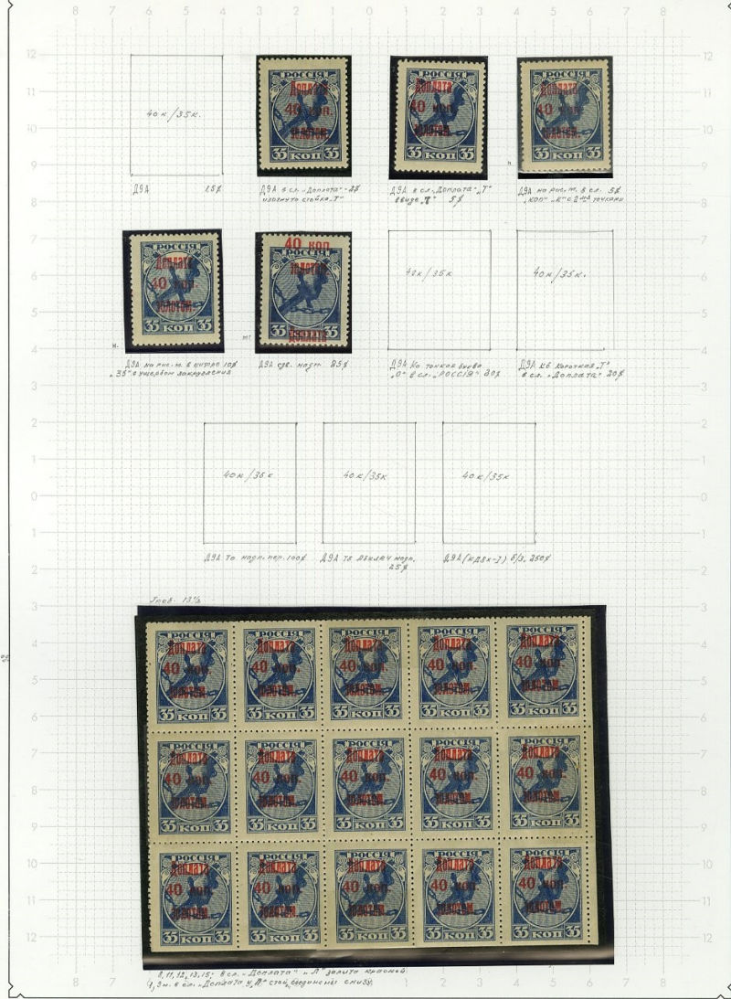 1473 O, og   imageLARGE LOTS AND COLLECTIONS RUSSIA 1918-1923 R.S.F.S.R. Issues, two-volume collection on pages, hundreds of used and unused, multiples, gutter pairs and strips, Chain Breakers, First Definitives, varieties, including inverted overprints and surcharges, different paper types, Semi-Postals, extensive 1922 Volga Famine Relief overprints, Philately for Children complete set, First Printing (1k imperf. signed Mikulski), 1922 5th Anniversary of October Revolution double impressions and pelure paper, extensive showing of the 1922-23 Star surcharges, with numerous double, inverted, shifted, missing overprints, 1922-23 Workers and Soldiers definitives, perforation varieties, double impression, one inverted (3r), 1923 Philately for Labor; also a folder with dozens of sheets, some additional items, etc. A solid basis for expansion, with many elusive varieties, high catalogue value (Image)